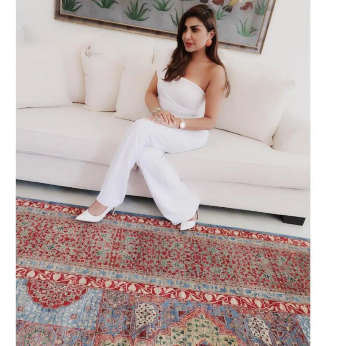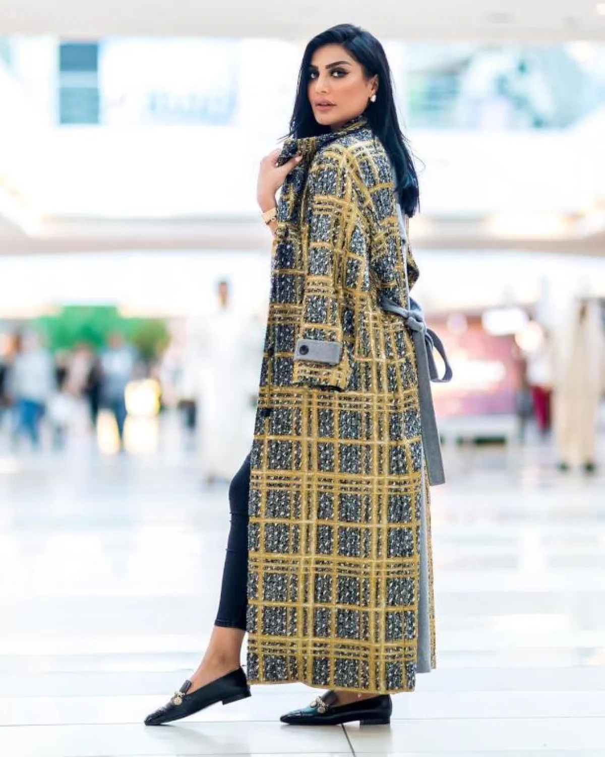 اعتمدت أمل العوضي منذ بداية الخريف 5 إطلالات، مزجت فيها الخامات الخفيفة مع بعض اللمسات التي تعكس تغير الطقس إلى البرودة.