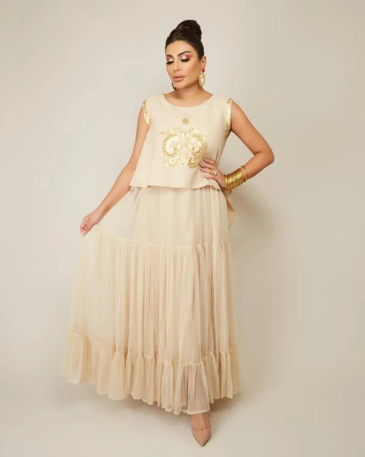 تتبع المذيعة والممثلة الكويتية أمل العوضي أسلوب في الأزياء يميل إلى الكلاسيكية والأنوثة.