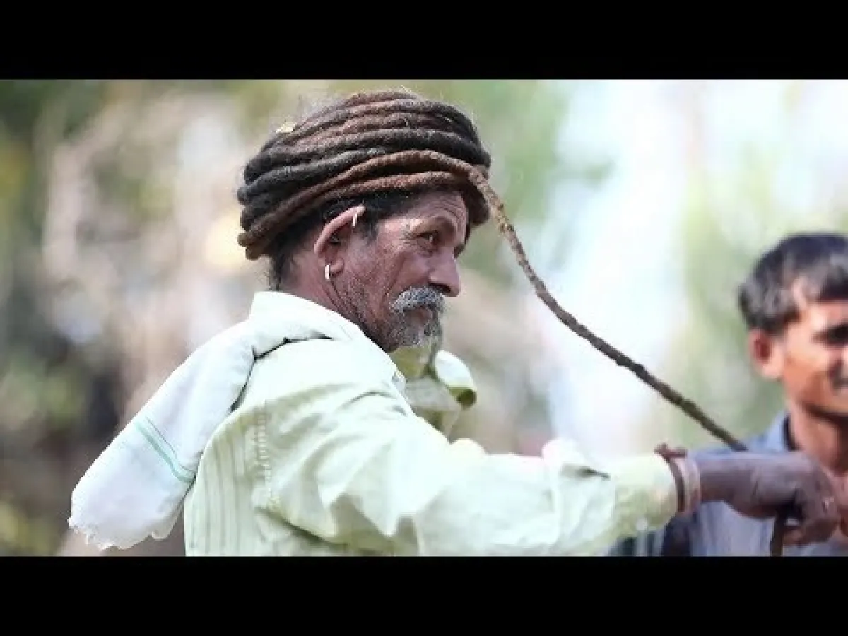 في الفيديو يمكن رؤية «راثوا» عندما يفك شعره ويقوم رجال القرية التي يعيش فيها وأطفالها بعمل صف بطول شعره الذي يبلغ طوله 15 متراً.