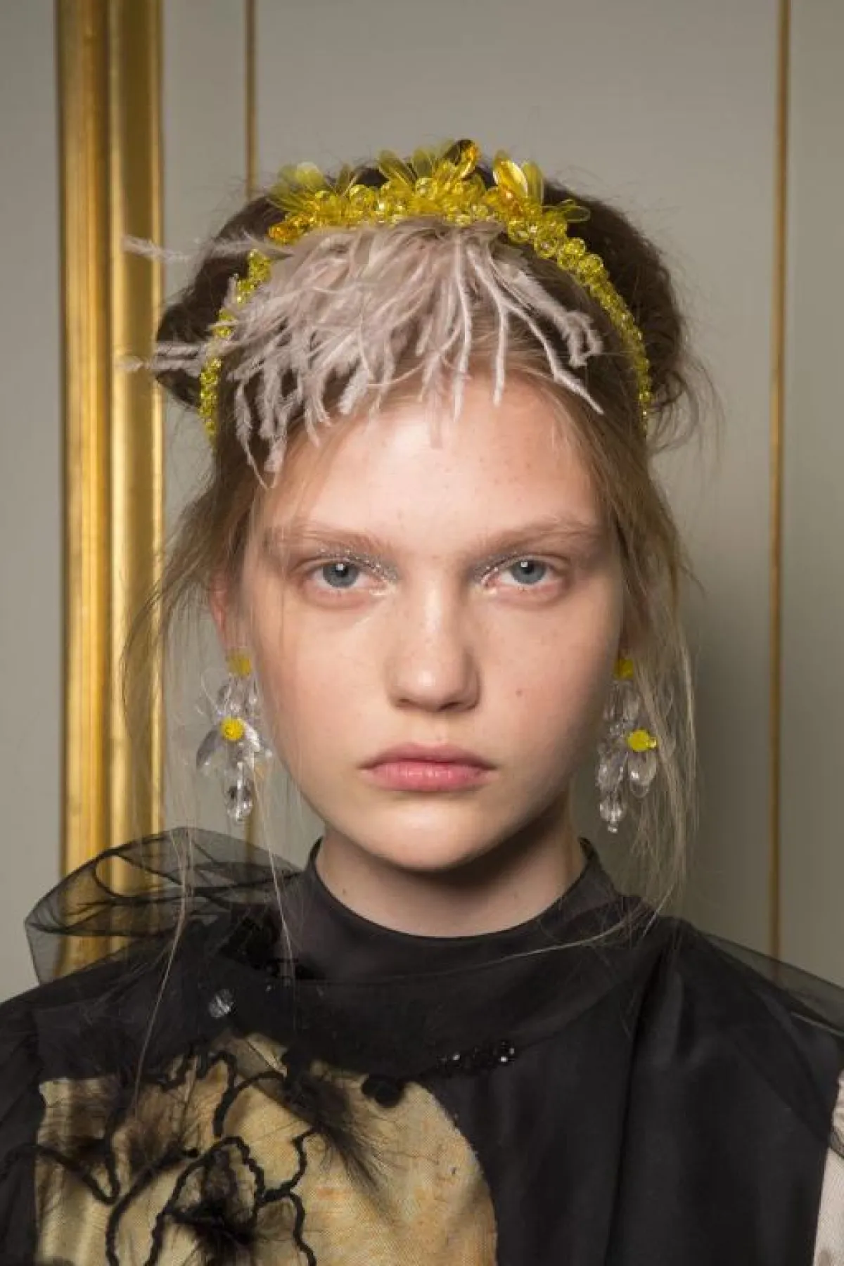 في المقابل اعتمد بيت أزياء Simone Rocha سيمون روشا، اكسسوارات الريش الخفيف مع الخرز، للعارضات، وتم وضعها على الشعر بطريقة عشوائية لفتت بها الأنظار.