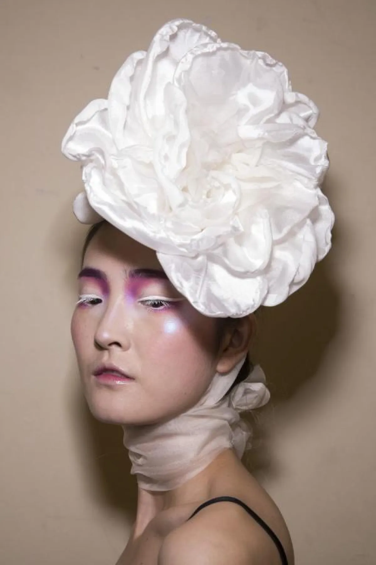 كما لفتنا اكسسوار الورود كبير الحجم من دار Tianyi Li تياني لي، بخامة القماش المتدرجة على شكل الوردة، المستوحى من قبعات السيدات في فترة الأربعينيات والثلاثينيات.
