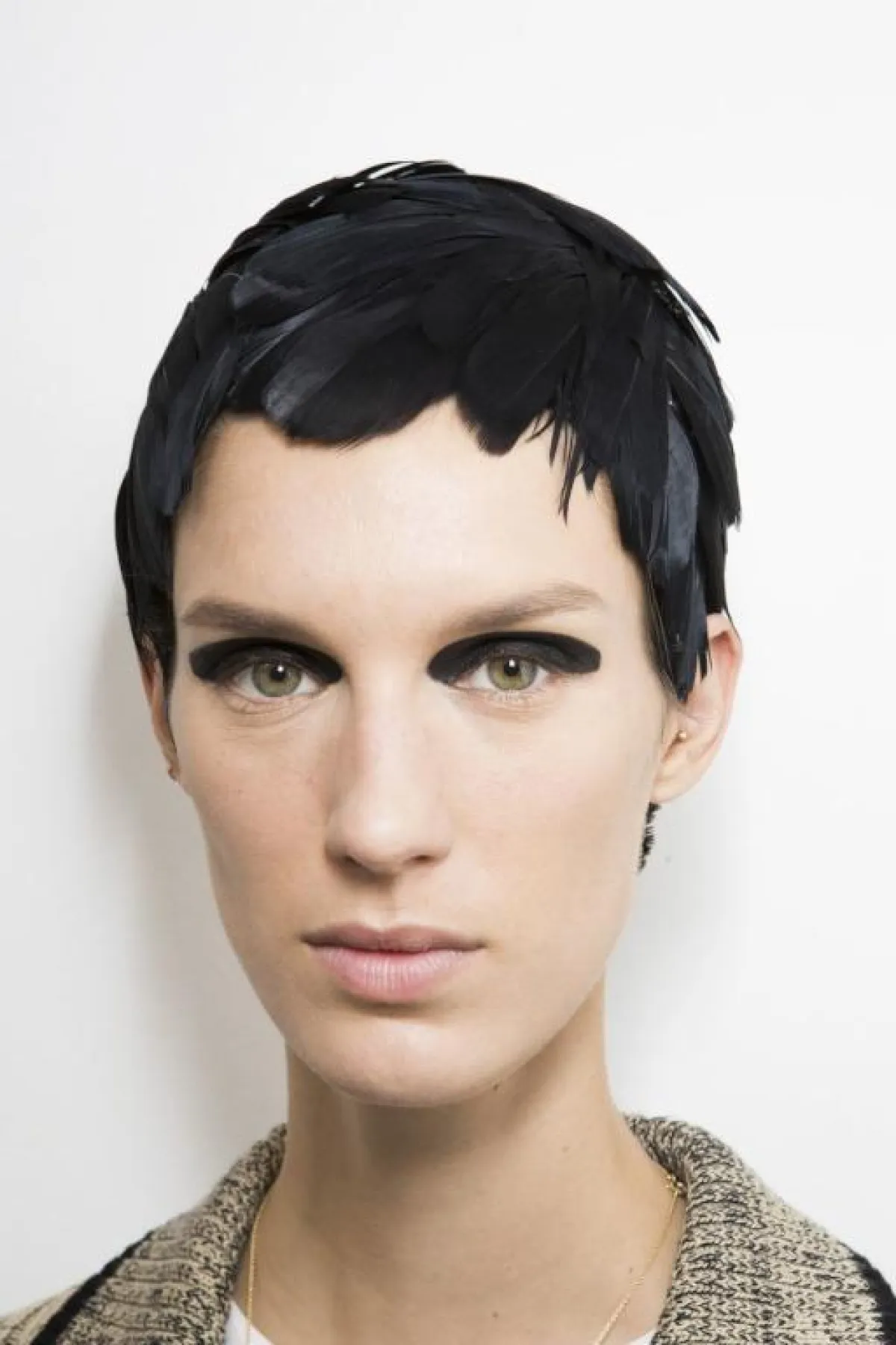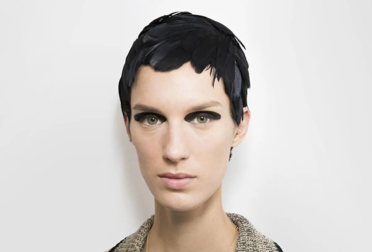 الريش ظهر بالسنوات الأخيرة الماضية في الفساتين، لكن هذا العام أصبح غطاءً كاملًا للرأس من دار Dries Van Noten درايس فان نوتين، بألوان زاهية كالأزرق الزهري، أو داكنة تشبه الباروكة كاللون الأسود.
