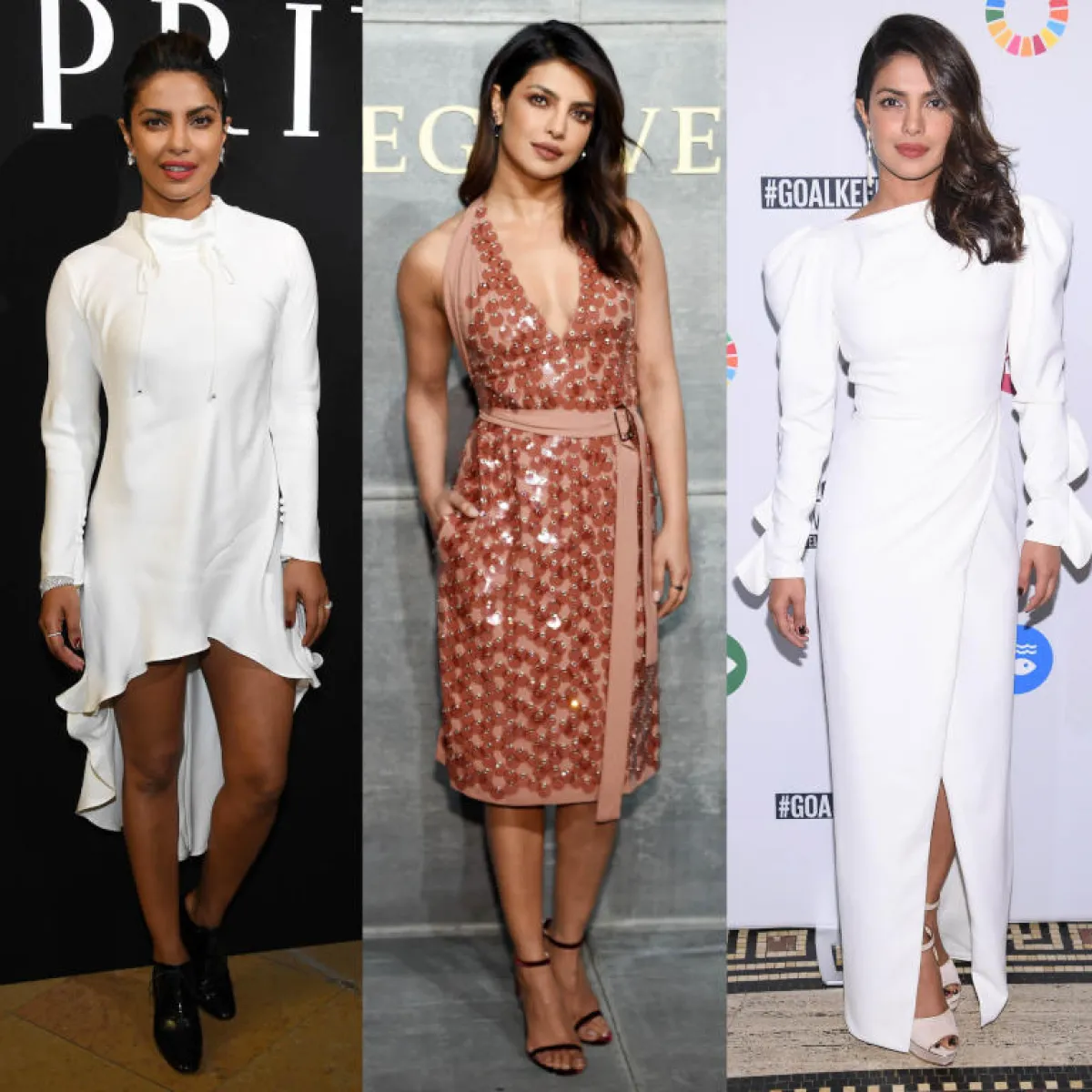 تمتلك بريانكا شوبرا براعة في اختيار الأزياء الجذابة، وخاصة هذا العام الذي شهد خطبتها وسيشهد زواجها، ويبدو أنها في حالة حب جعلتها أكثر أنوثة، لذلك جاءت كل اختياراتها مثيرة وجريئة.