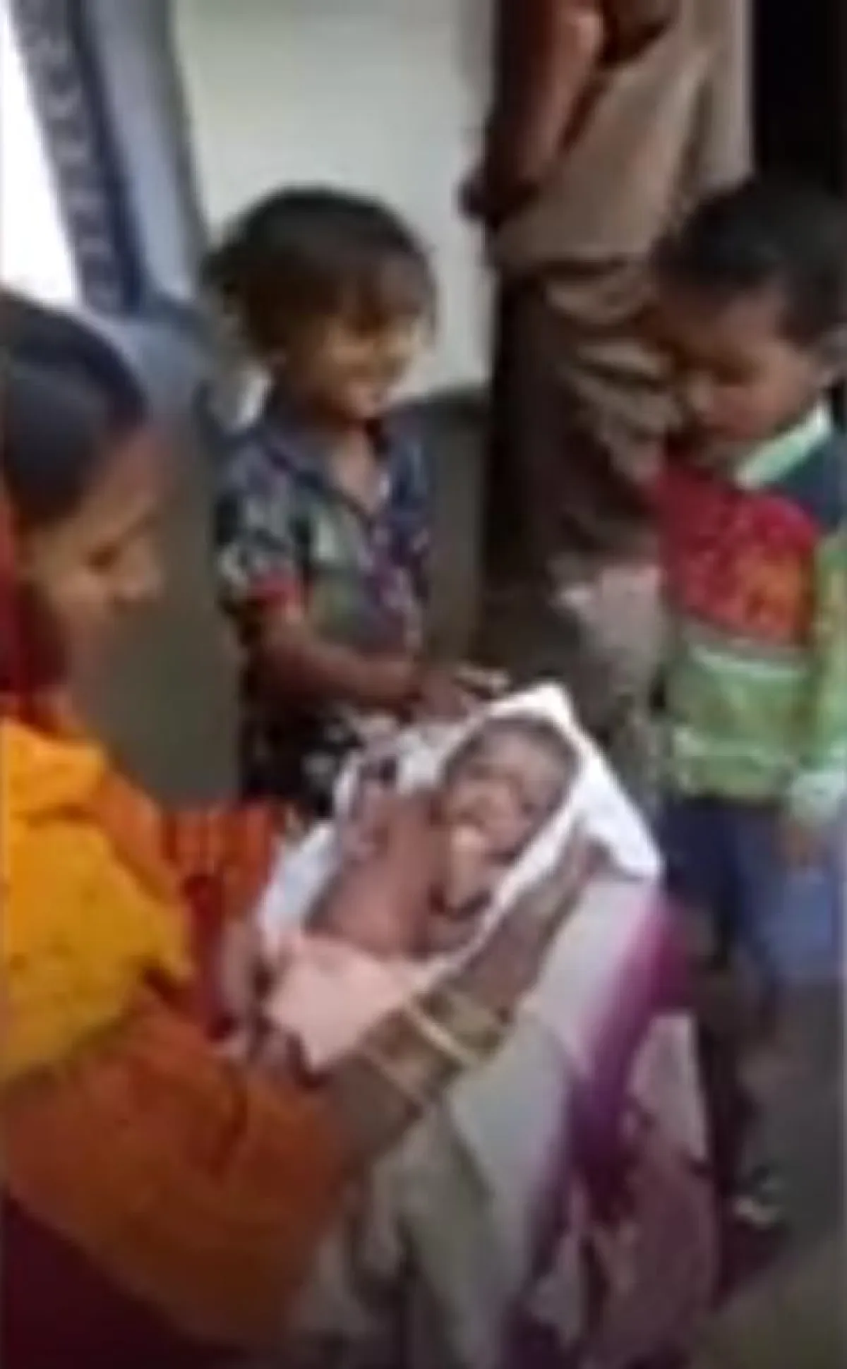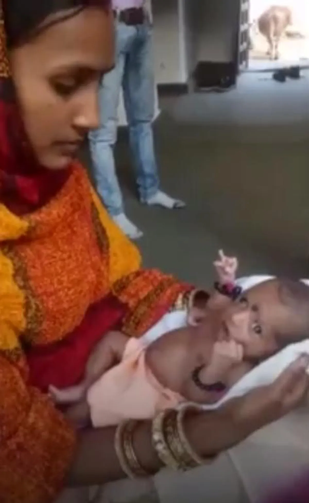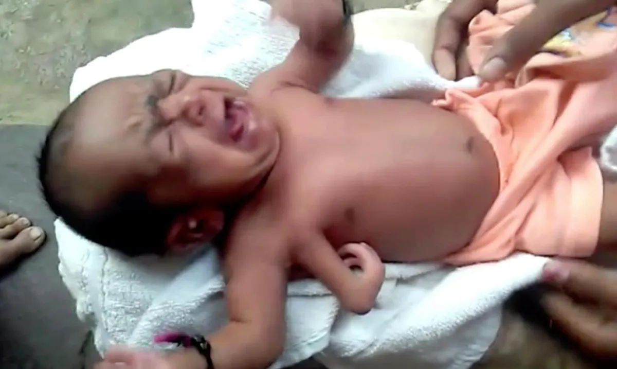 في حالة ولادة غريبة وفريدة من نوعها ولدت امرأة هندية طفلة بثلاثة أذرع فى قرية بيلاسبور، الهندية.