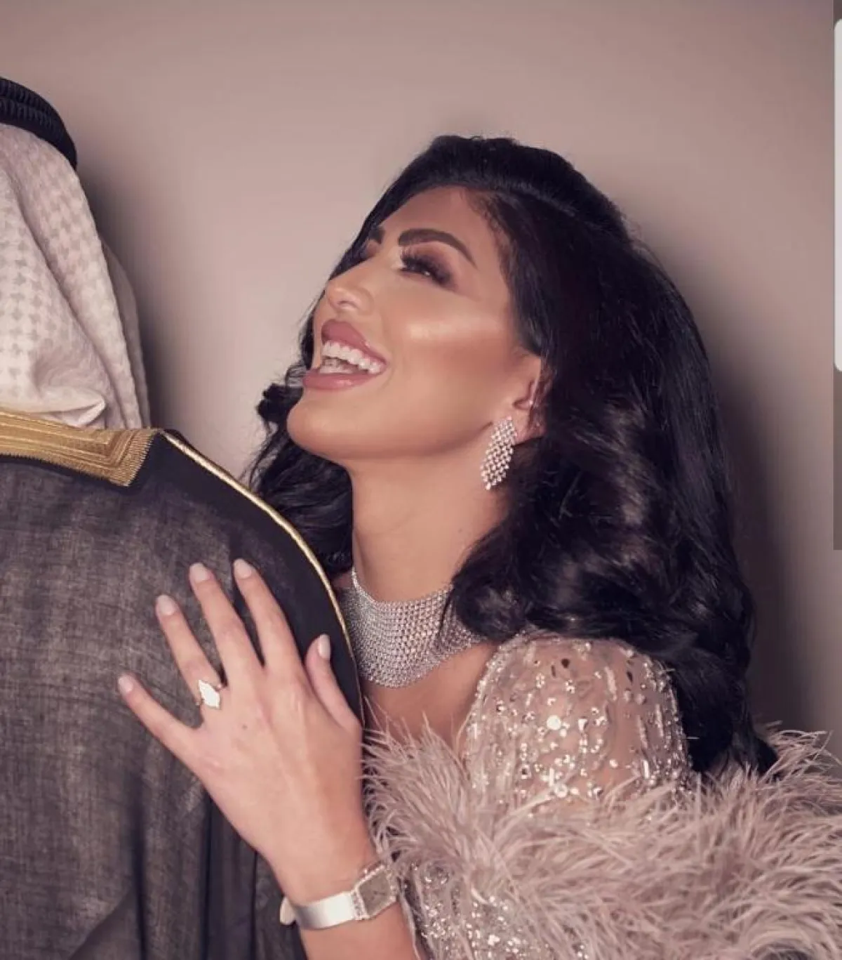 نشرت عبر حسابها الخاص في إنستجرام صورها في يوم عقد قرانها وتجهيزاتها الفخمة، حيث ارتدت سارياً هندياً أخضر اللون، زيَّنته بالذهب، ثم نشرت تفاصيل صالة زفافها، وإطلالتها الأنيقة المميزة، لكنها لم تفصح عن هوية عريسها، واكتفت بذكر اسمه "عبدالعزيز"، وقد تداول مستخدمو مواقع الـ "سوشيال ميديا" صورها وصور شبكتها الماسية المميزة.