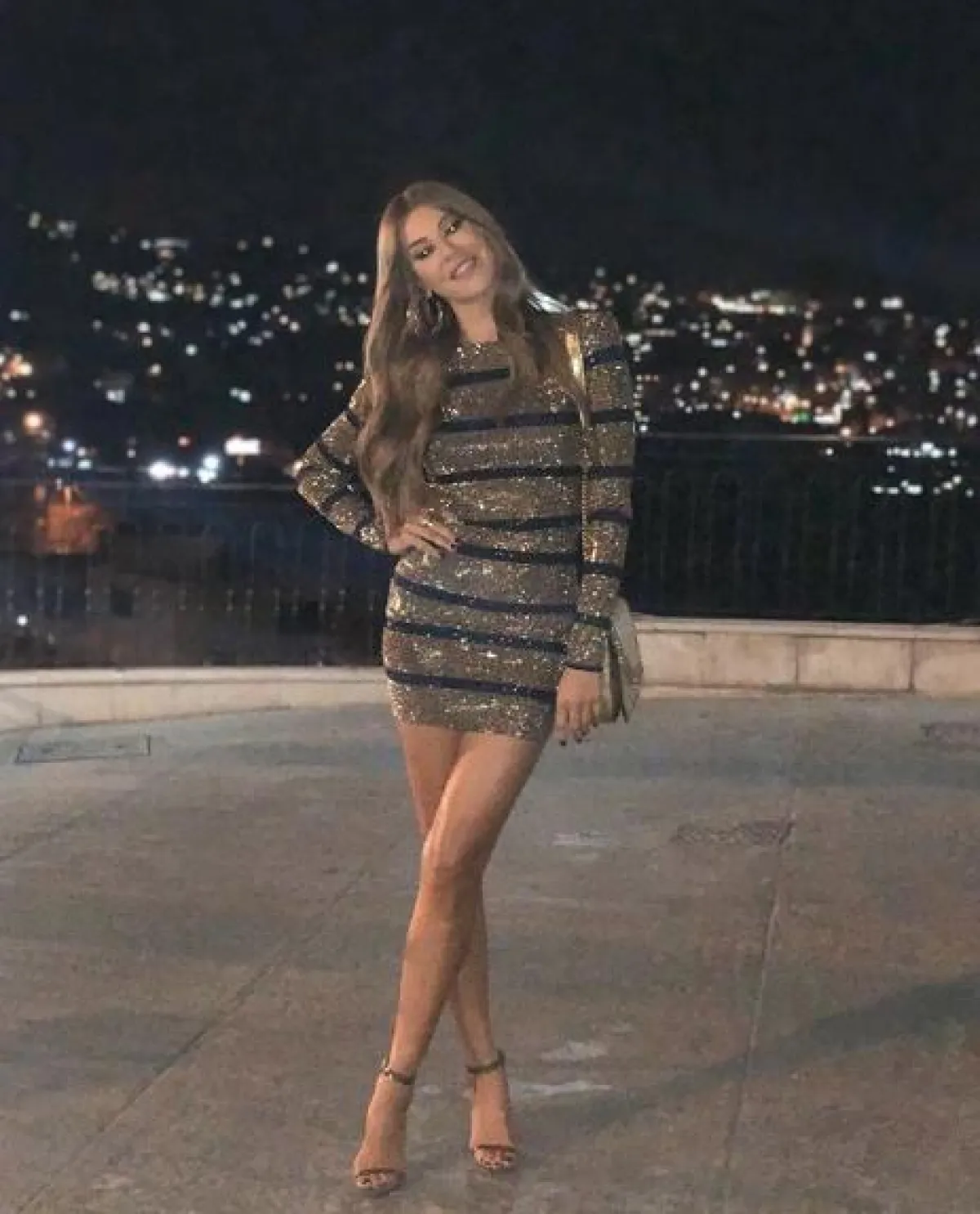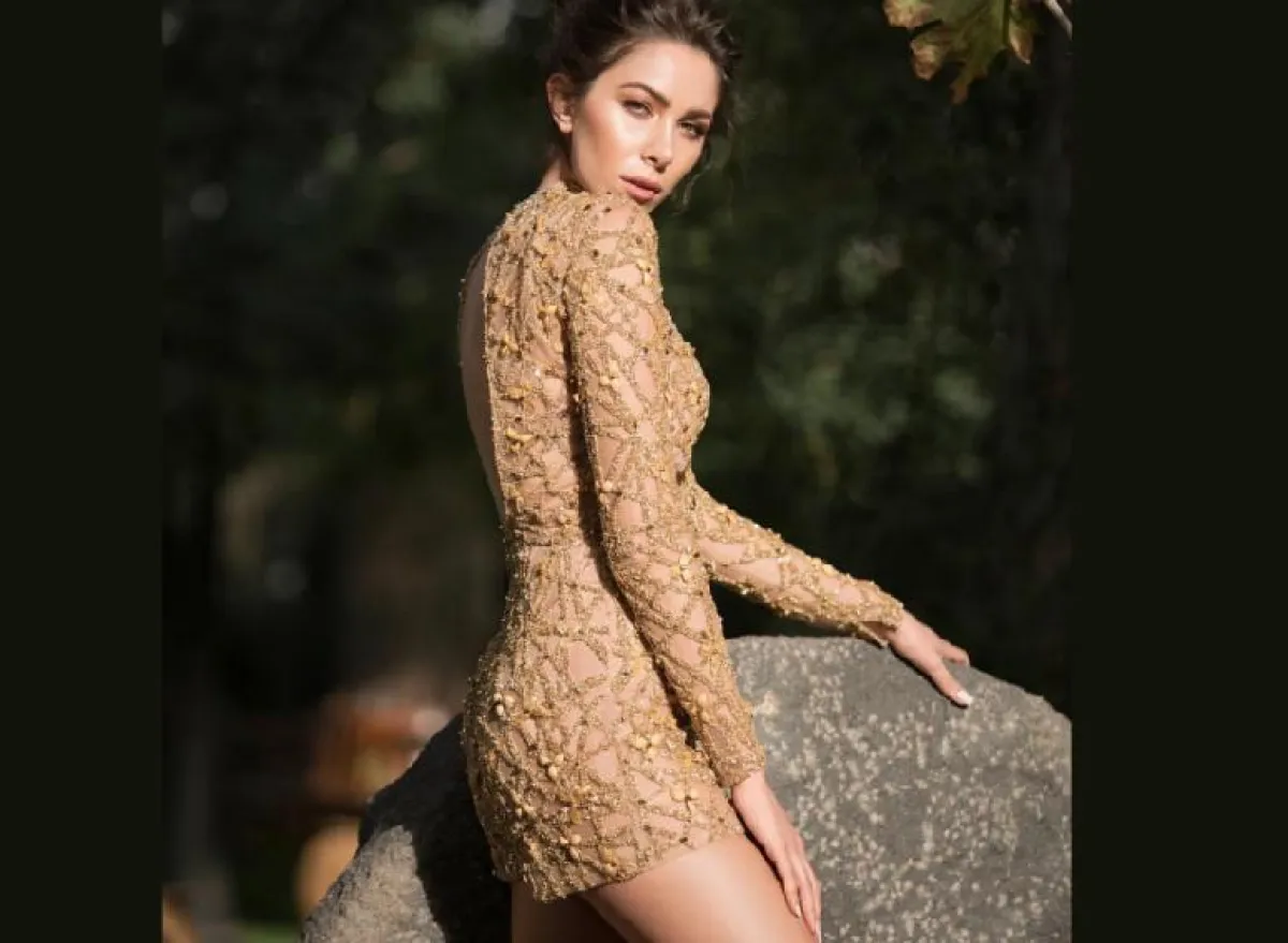 نسرين طافش في فستان ذهبي قصير براق: