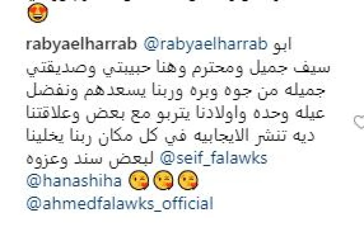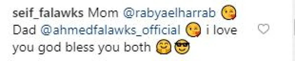 وعقّب الصغير سيف على المنشور موجهًا الدعوات لوالده ووالدته، ومؤكدًا حبه لهما، من دون الإشارة إلى زوجة والده هنا شيحة.