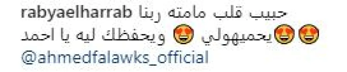 أحمد فلوكس شارك جمهوره، بصورته مع نجله سيف عبر حسابه الشخصي على موقع انستقرام، معلّقًا عليها: حبيب قلبي، وكانت المفاجأة في تعليق طليقته "رابيا" على الصورة بقولها: حبيب قلب مامته، ربّنا يحمهولي ويحفظك ليه يا أحمد، وعقّب عليها فلوكس سريعًا: ويحفظك ليه.