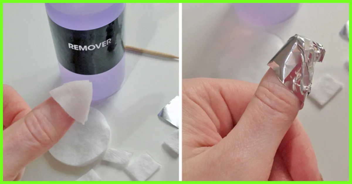 - لفّي القطن المشبّع بمزيل طلاء الأظافر على كامل أظافركِ، وثبّتيه باستخدام ورق ألومنيوم أو شريط لاصق لمدّة ربع ساعة، كي يتحلّل الجل نهائيّاً. أزيلي لفافات الأسيتون عن أظافركِ، ثمّ استعملي الخشبة المخصّصة لإزالة اللّحم المحيط بالأظافر Cuticles لدفع ما تبقى من المناكير الجل عن الظفر.