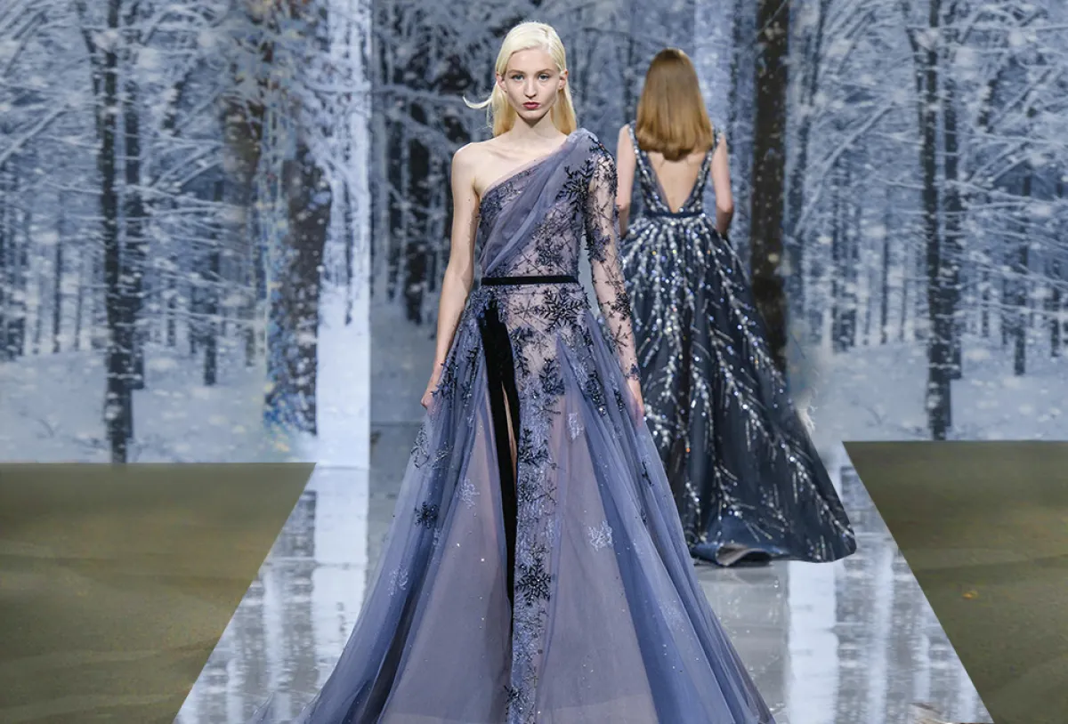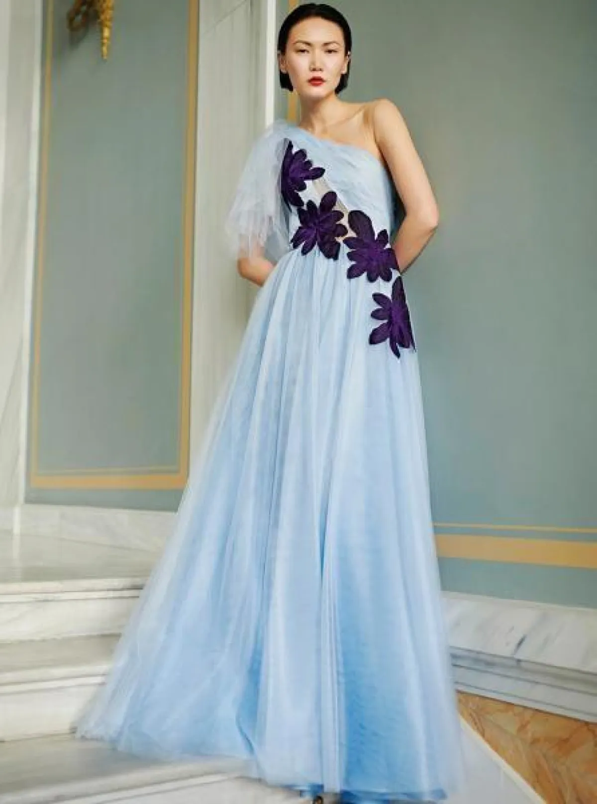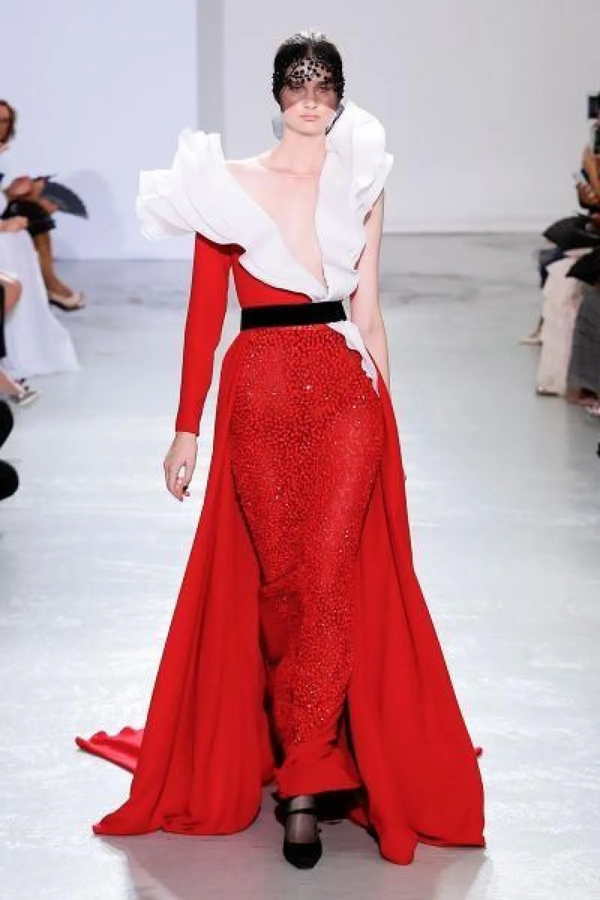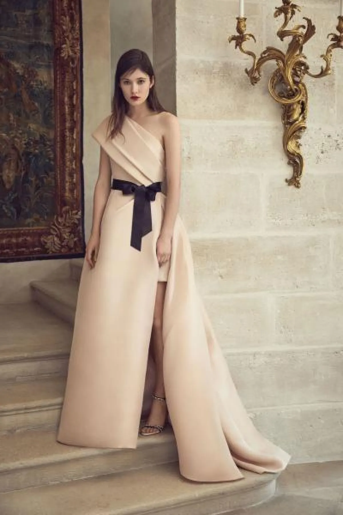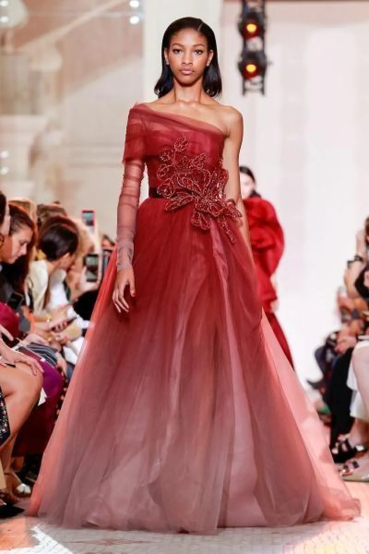 برزت الفساتين بالكتف الواحد المزين بعقدة فيونكة أو طبقات تول وكشاكش، مثل فساتين Costarellos، إيلي صعب Elie Saab، وجورج شقرا Georges Chakra.