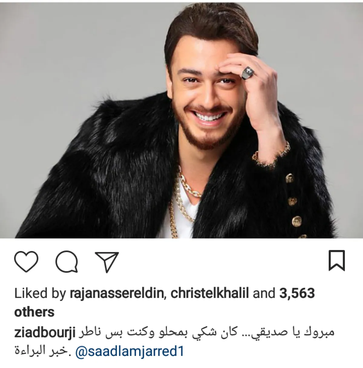 زياد برجي ، نشر صورة لزميله سعد لمجرد عبر حسابه على "إنستقرام" وعلق عليها "مبروك صديقي. كان شكي بمحله وكنت بس ناطر خبر البراءة"..