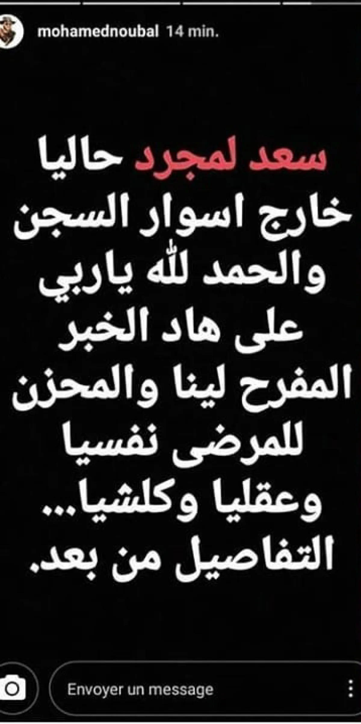 .محمد نوبال أكد وجود لمجرد خارج السجن وأشار ألى أن هذا الخبر  مفرح للبعض ولكنه محزن للمرضى النفسيين