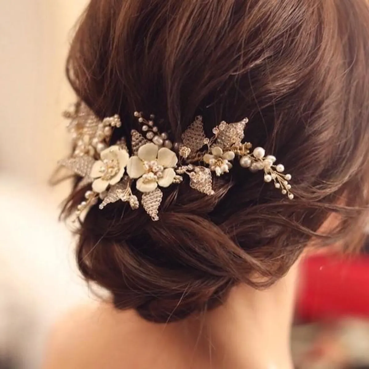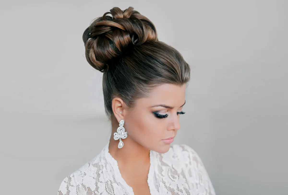 تسريحة شعر مرفوع مع اكسسوارات جانبية
