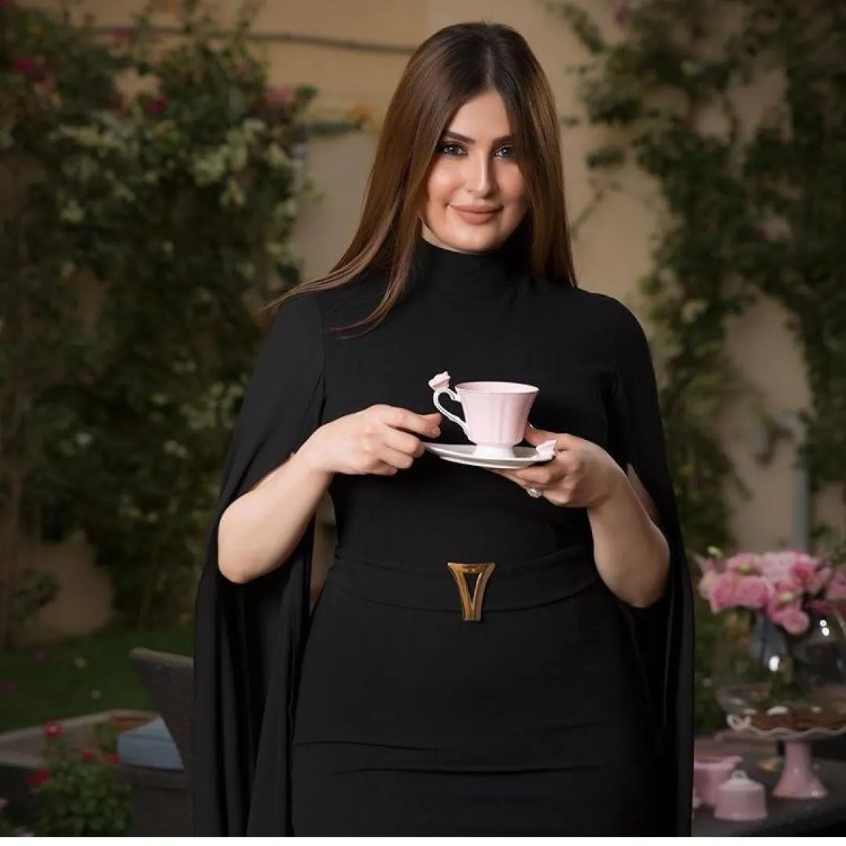 إذا كنتِ لا تحبين التكلف ولفت الأنظار بشكل مبالغ فيه، إليكِ هذه الدرجة البنية من الإعلامية رؤى الصبّان، مع الشعر الأملس الطويل، تناسب تسريحة الشعر المنسدل لإبراز درجة اللون مع التاج المخملي الناعم، لاطلالة غاية في الرقة.