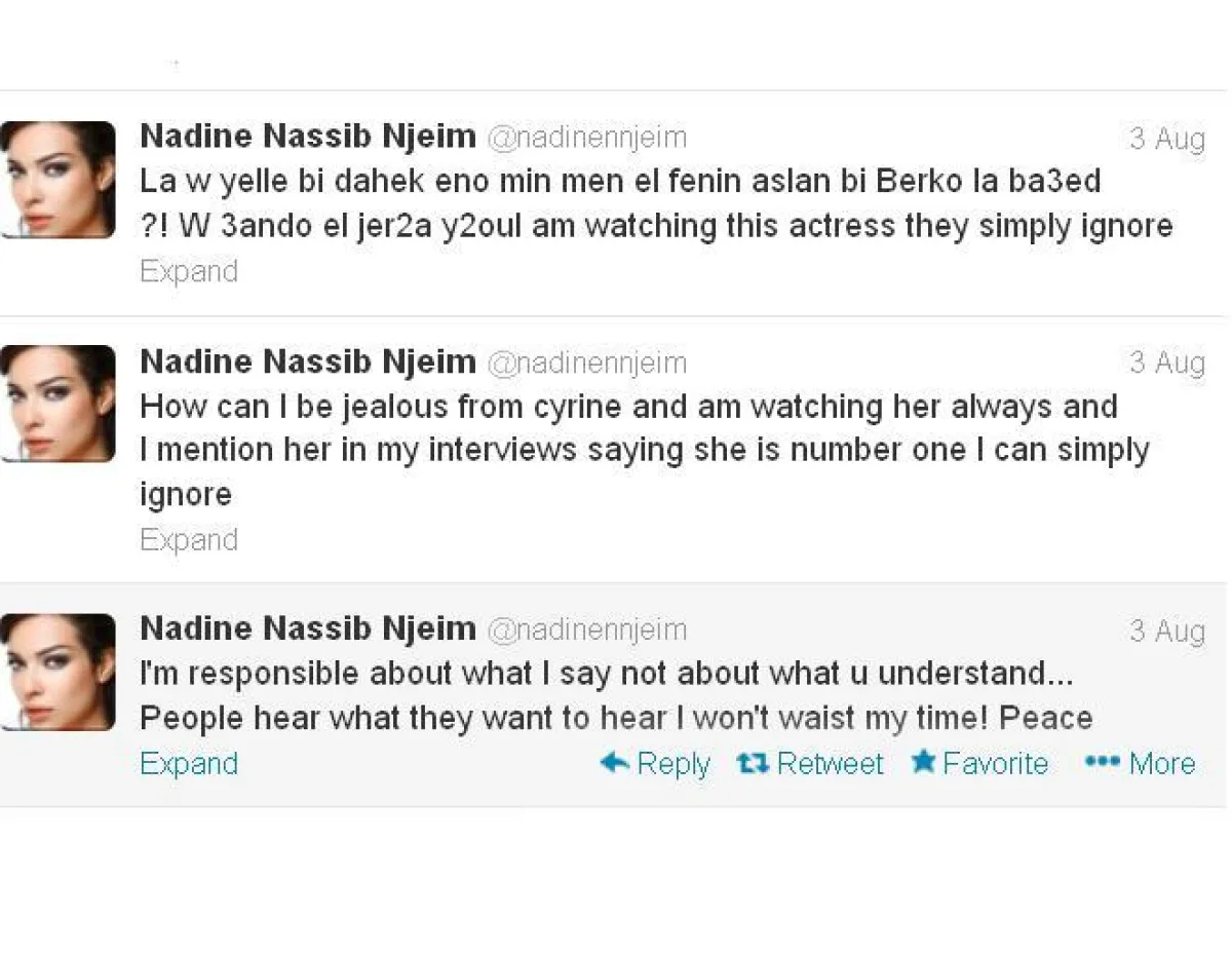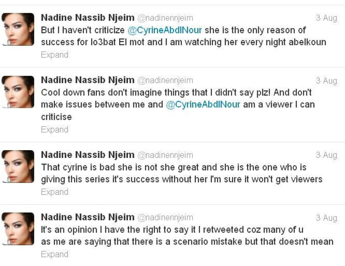 فقد شنّ جمهور الفنانة سيرين عبد النور هجوماً على نادين، واعتبروا أنّها تقلّل من شأن سيرين وشأن المسلسل، بل ذهب البعض إلى التأكيد أنّ نادين أعادت نشر المقال على صفحتها على "تويتر" لأنها تتبنّى ما جاء فيه، بسبب غيرتها من سيرين.
