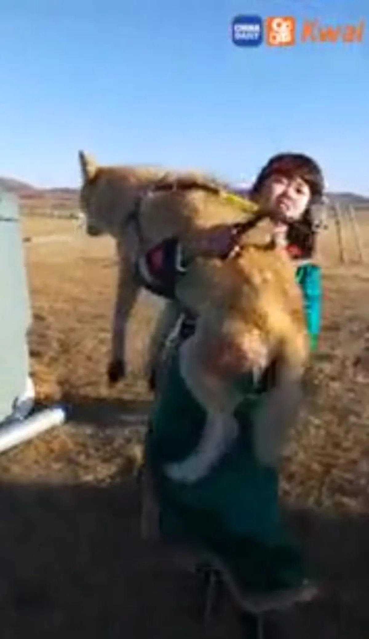فتاة صينية لا تخشى الذئاب المفترسة، وترقص معهم، رغم أن الاقتراب من هذا الحيوان غير محبب لدى الإنسان ويعرضه لخطورة شديدة.