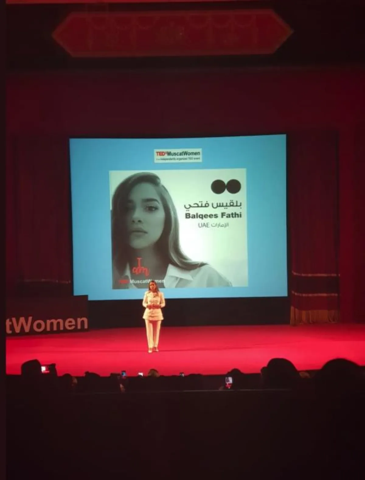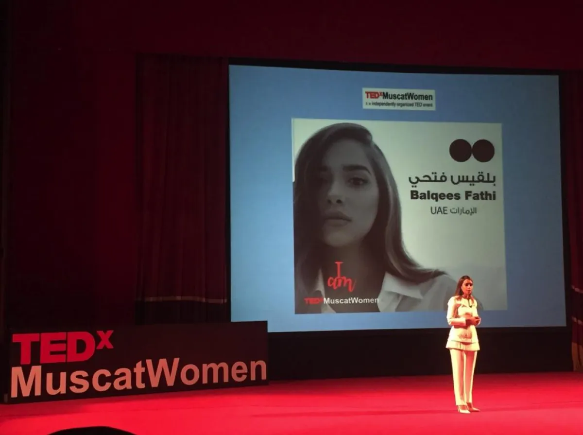 نشرت الفنانة بلقيس فتحي مقطع فيديو للكلمة التي ألقتها خلال محاضرة تحفيزية في «مؤتمر تيدكس» العالمي بمحافظة مسقط في سلطنة عمان، يوم السبت 8 ديسمبر الجاري.