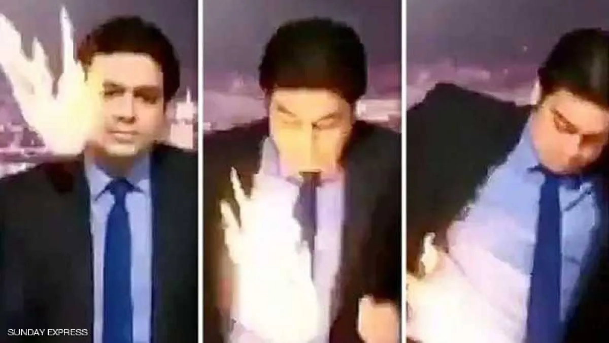 هذا مشهد غريب للغاية، ولا نراه كل يوم على شاشات التلفاز، وتحديداً في أحد البرامج الحوارية الجادة التي تتناول أكثر القضايا السياسية والاجتماعية تداولاً وانتشاراً، ولكنه حدث بالفعل، وهو أنه وبشكل مفاجئ، سقطت «كــــرة نارية» من مكان مجهول، في حضن مذيع برنامج حواري باكستاني، خلال تقديمه لبرنامجه على الهواء مباشرة.