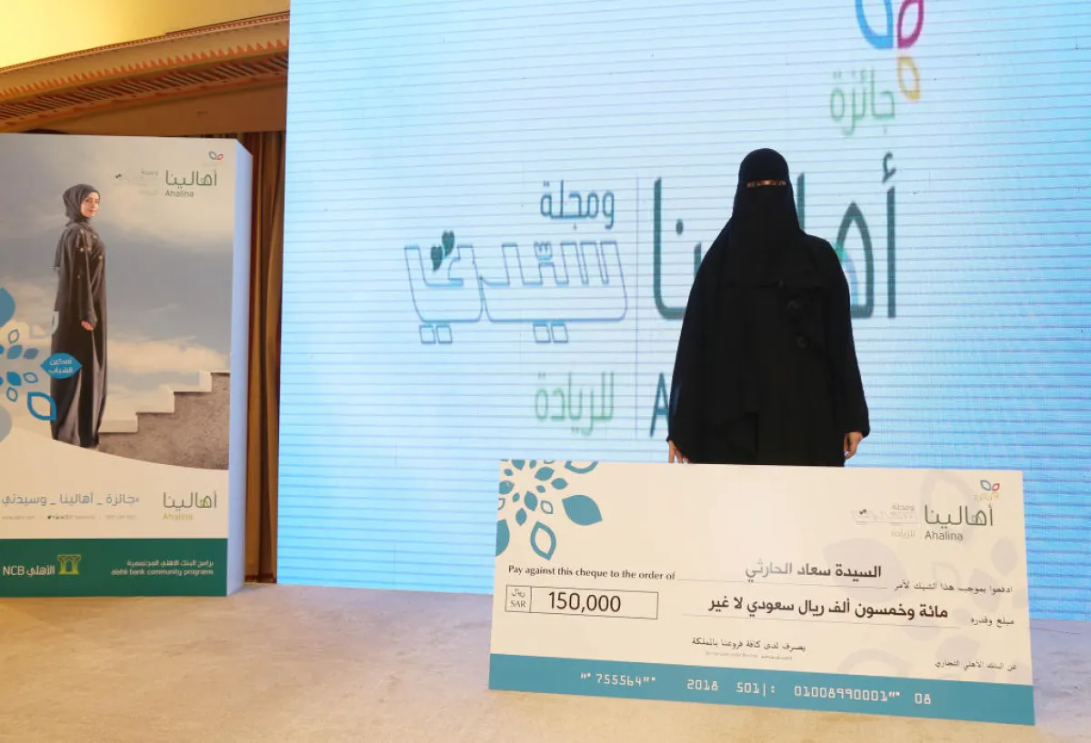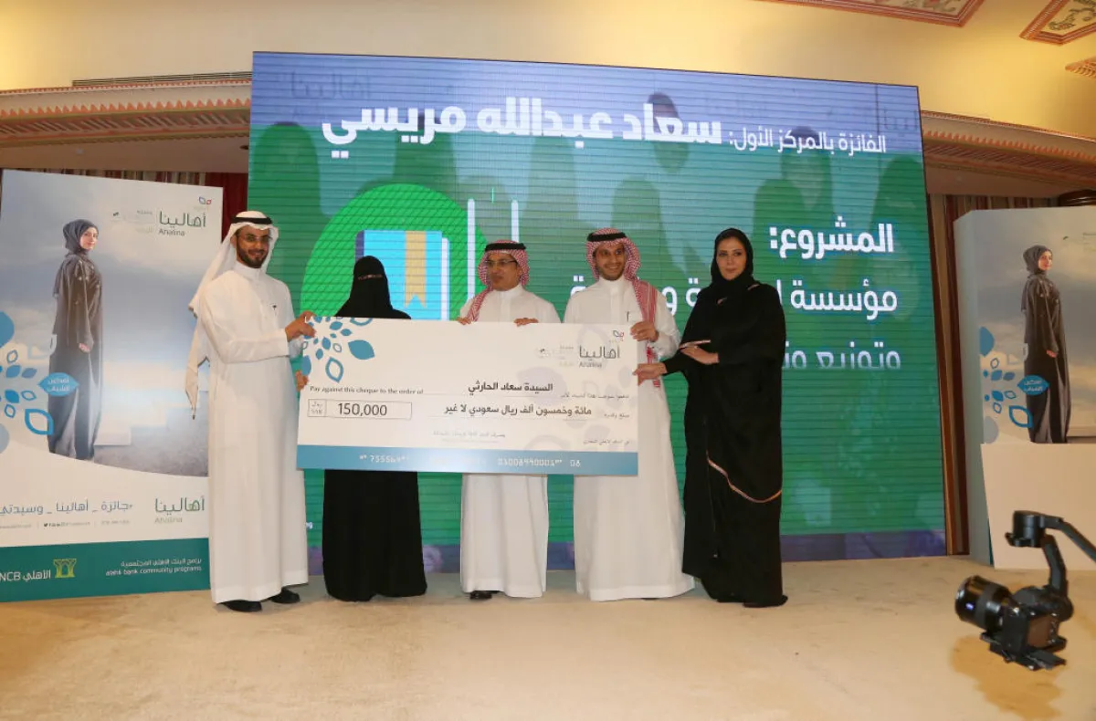 وقام بتسليمها الجائزة محافظ هيئة المنشآت الصغيرة والمتوسطة المهندس صالح الرشيد والتي تبلغ قيمتها مئة وخمسون ألف ريال وذلك خلال الحفل الذي أقيم في فندق الريتز كارلتون بجدة يوم الأحد 9 ديسمبر في لقاء مدعوم من البنك الأهلي متمثلاً ببرنامج المسؤولية المجتمعية "أهالينا" ومجلة "سيدتي".