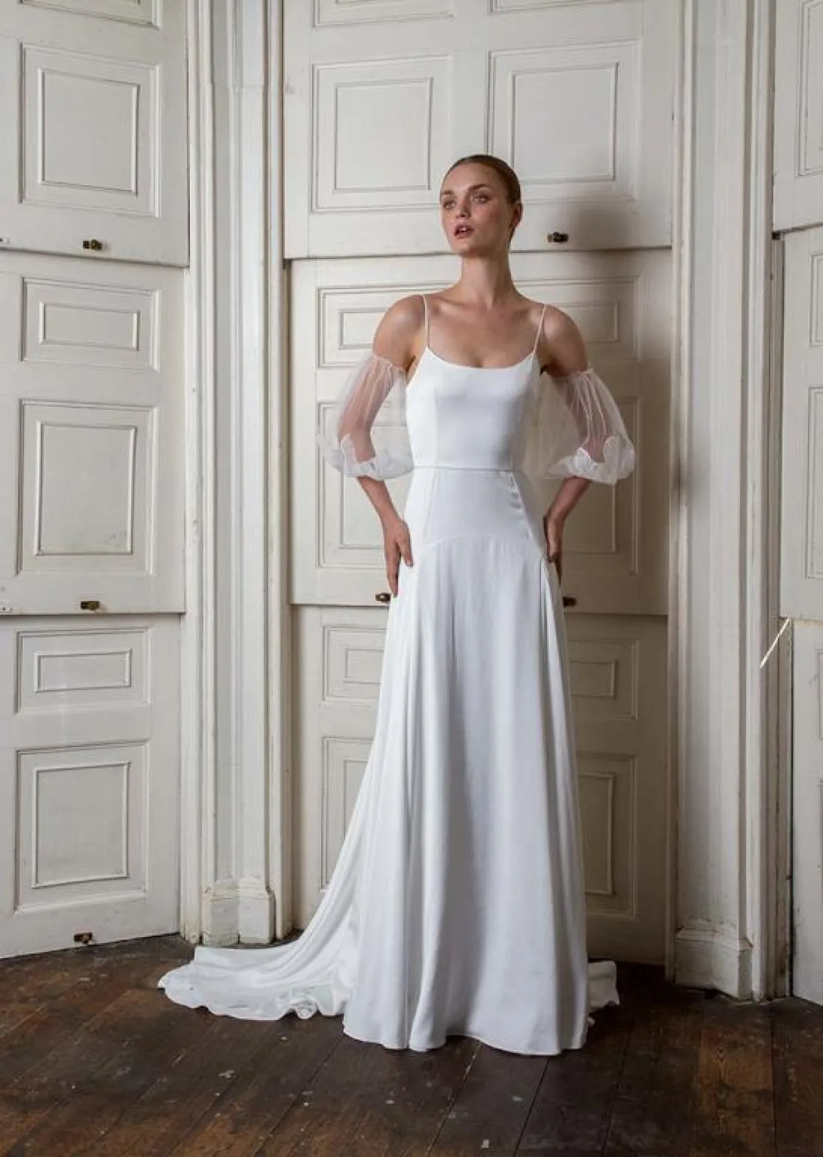 وبرزت هذه الصيحة لدى ماركة Halfpenny London، والفستان البسيط بالحمّالات الرفيعة مع الأكمام التول الواسعة والمنفصلة عن الفستان.