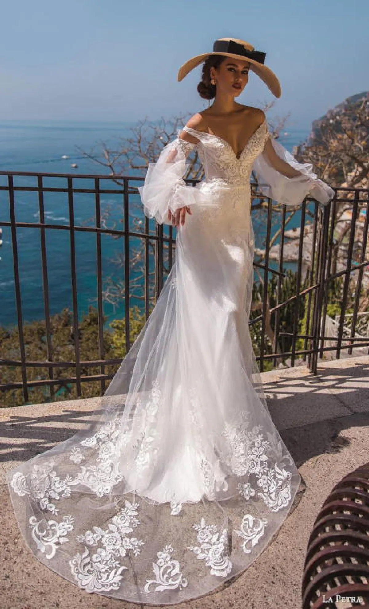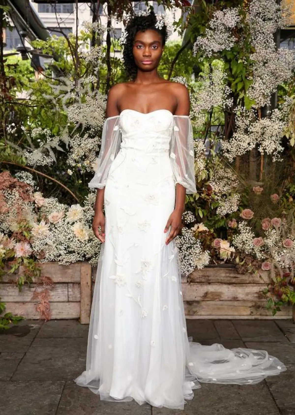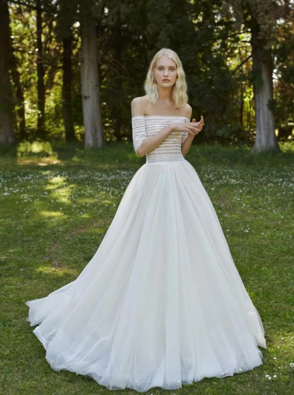 أثناء مطالعتك لأحدث موديلات فساتين زفاف 2019، سوف تلاحظي إبداعات المصممين في تقديم فساتين زفاف بأكمام منفصلة، بحيث تظهر الأكتاف، فهي تتشابه مع صيحة الأوف شولدر Off Shoulder، ولكنها تبدو أكثر لفتاً للأنظار.