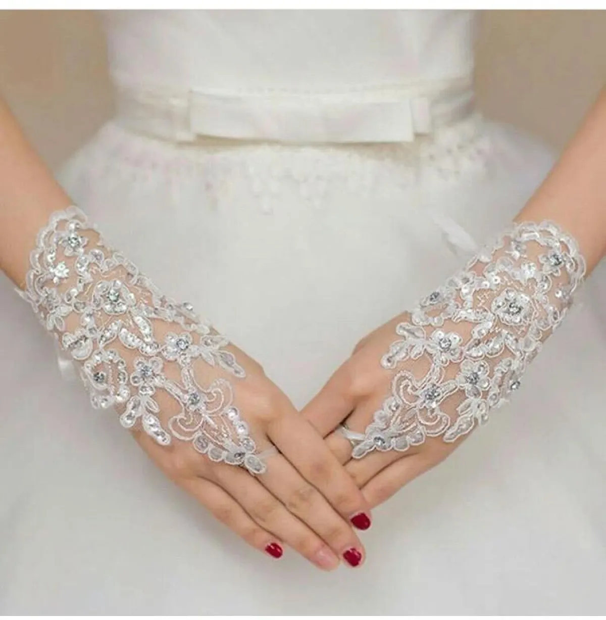 إن كانت يداك تتحسسان من أقمشة القفازات، ولكنك تميلين إلى ارتدائها بيوم أحلامك، فاعتمديها مفتوحة من عند منطقة الأصابع، كـ القفازات المطرزة بخيوط الاورجانزا اللامعة.