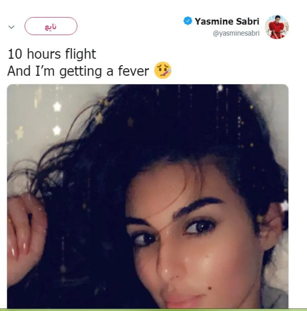 ياسمين تعلن إصابتها بعد سفر 10 ساعات متواصلة
