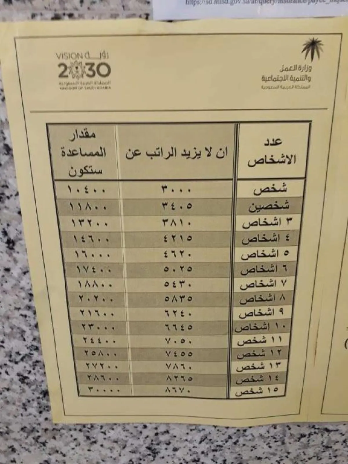 6. يجب الأخذ فى الاعتبار بأن أقصى حد لمبالغ المساعدات المقطوعة هو 30,000 ريال سعودي، ويتم تحديد قيمة هذا المبلغ وفقًا لعدد أفراد الأسرة التي سيتم صرف المساعدات لها، ورواتب المتقدمين للحصول عليها.