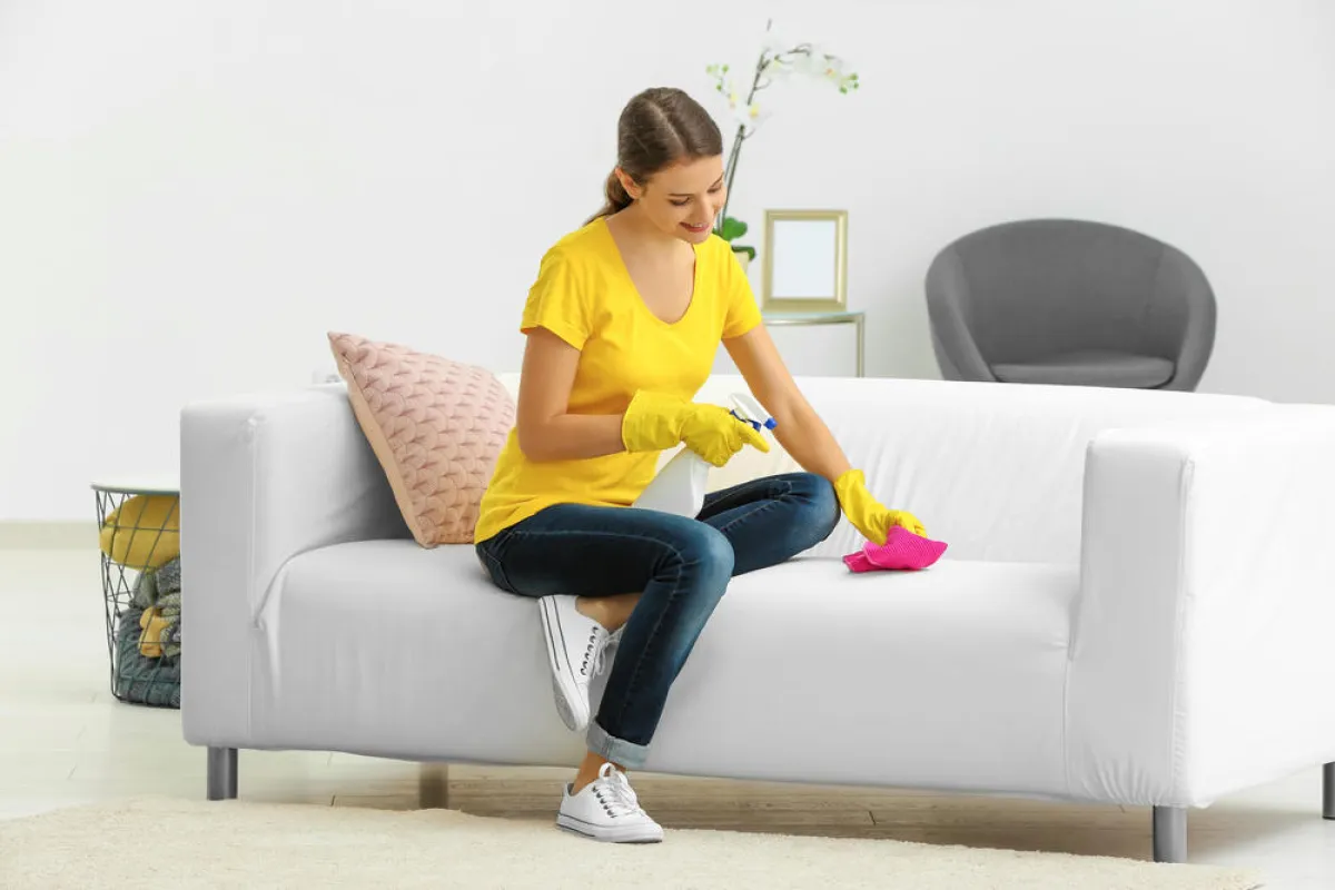 تُخلط المكوِّنات جيِّدًا، مع مسح المفروشات، للحصول على نظافة تامَّة ولمعان ممتاز.