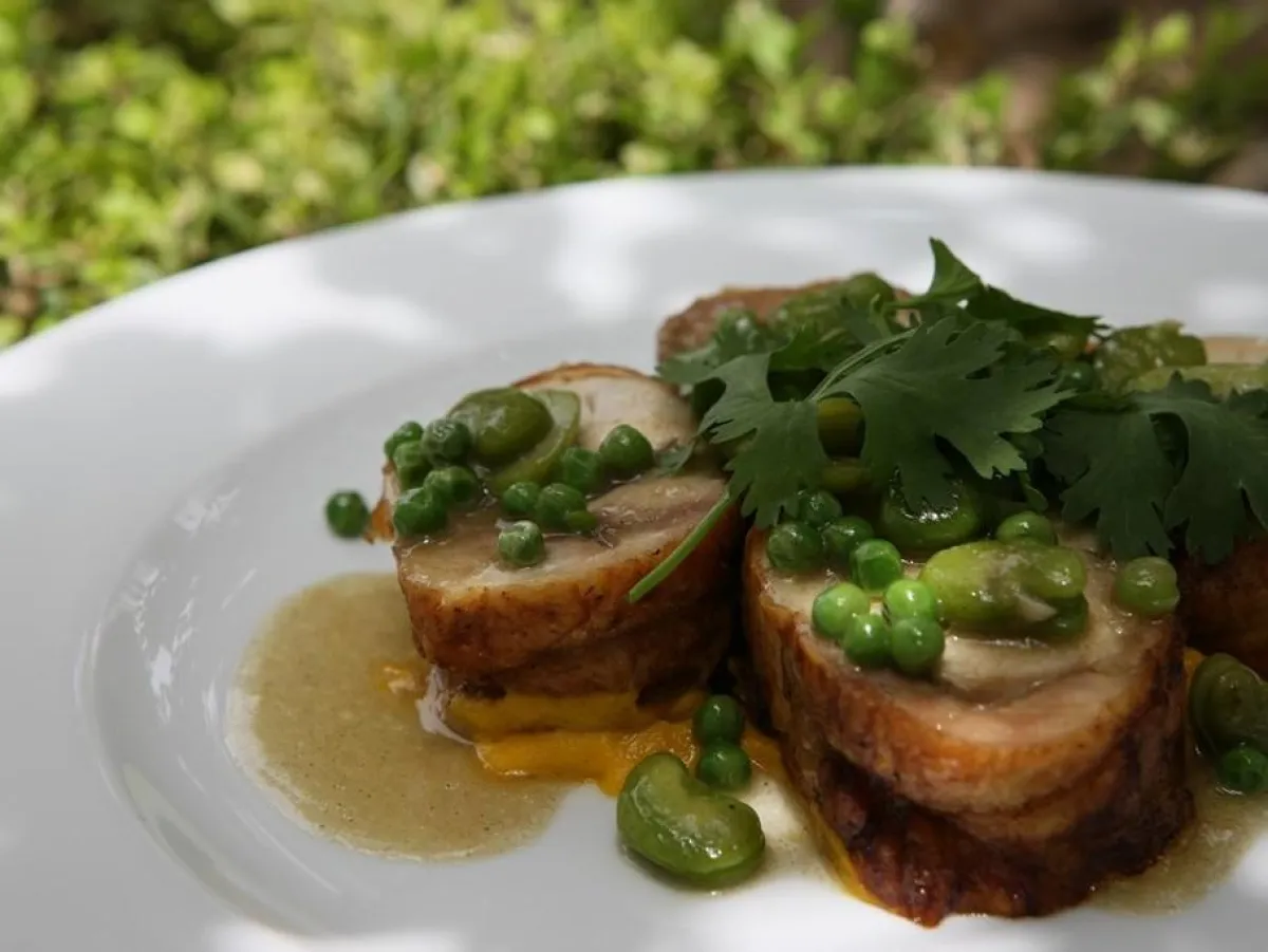 5 – يضاف الى الطبق خليط الخضر، ويزيّن بأوراق الكزبرة الخضراء (الكمية المتبقية) ومرقة الدجاج والكمون والحامض.