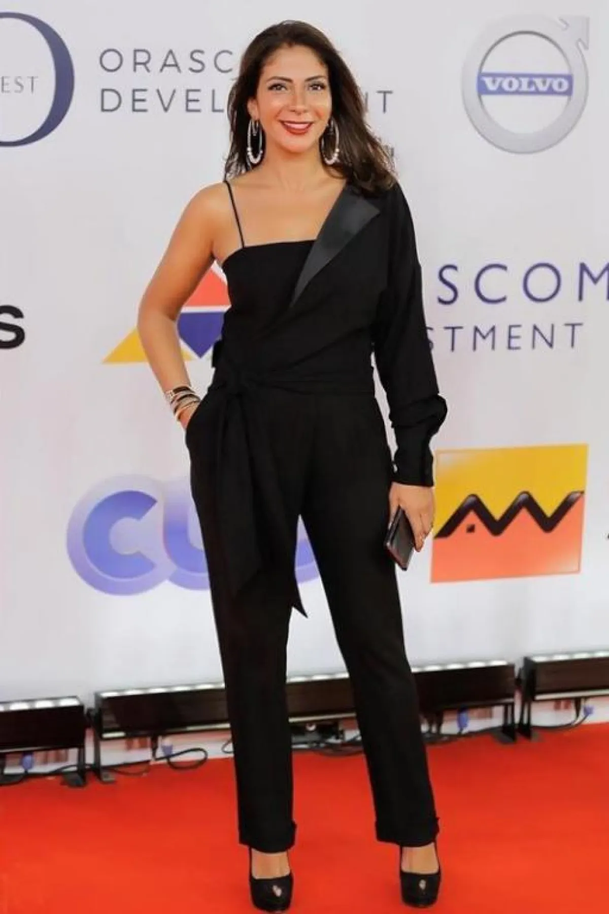 شاهدنا منى زكي أيضًا وقد اختارت جمبسوت أسود بتصميم عصري، مستوحًى من التوكسيد، بقصة الكتف الواحد، وقد بدت اطلالتها فيه شبابية ومميزة، وقد نسقت معه اكسسوارات باللون الأسود ومجوهرات باللون الفضي.