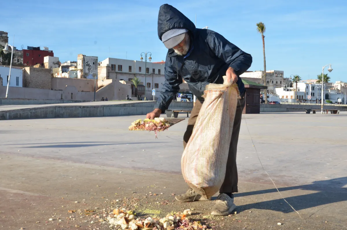 وبالضبط من أحد المنازل هناك، ومع نفحات الصبح الأولى، يبدأ عبدالرزاق رحلة الشتاء والصيف منذ ثمانينيات القرن الماضي، رحلة يومية يقضيها بين المطاعم الصغيرة والكبيرة، يجمع بقايا الطعام ومما رُزق به من أصحاب محلات المطاعم؛ ليرزق بها نوارس وادي أبي رقراق.