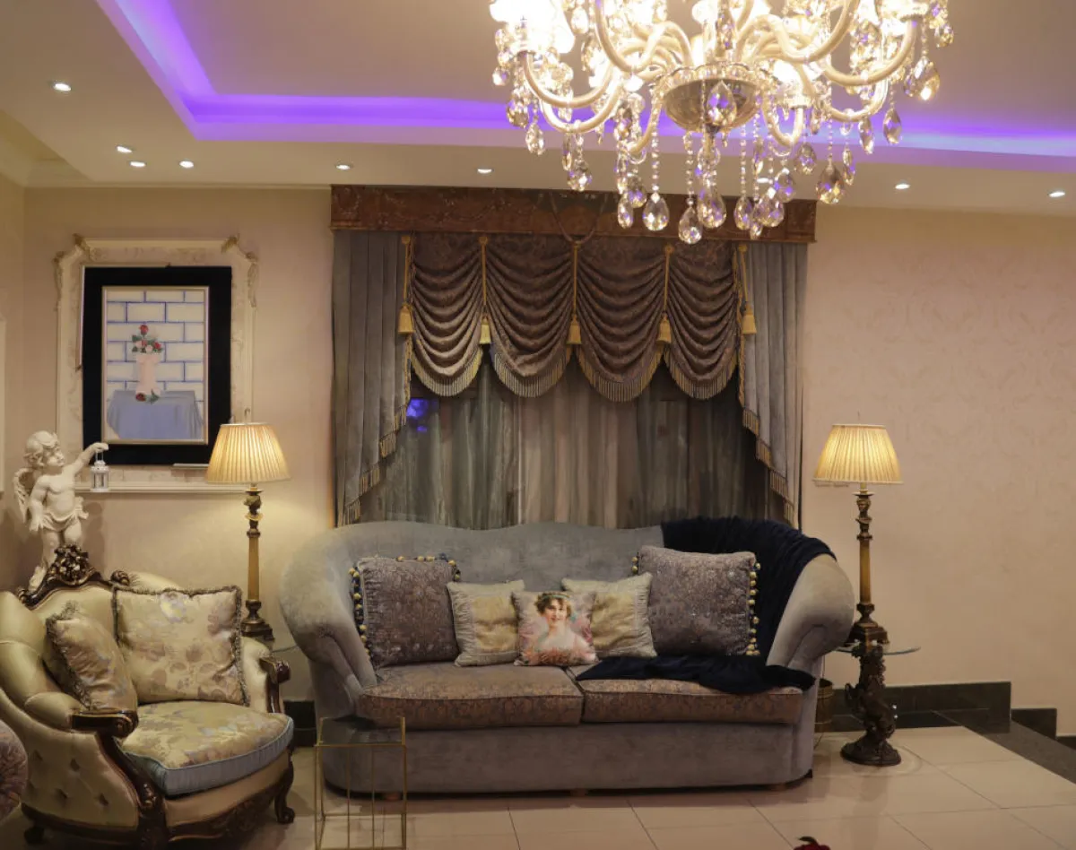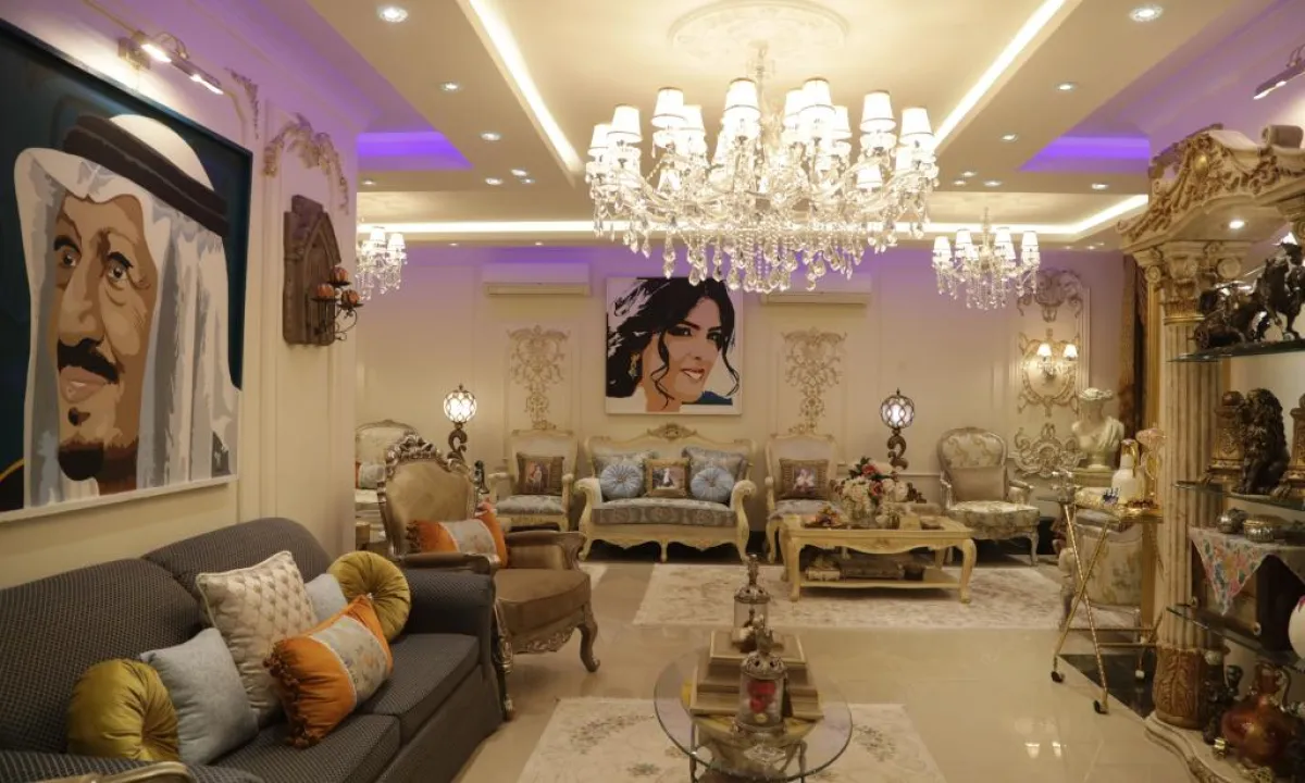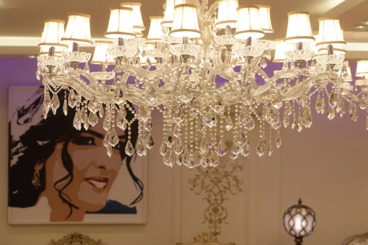 • الإضاءة الاصطناعية: تعبِّر المصممة عن حبِّها للفن التشكيلي من خلال تطوير تقنية، تعتمد على الإضاءة الاصطناعية، حيث توزع الأباجورات الجدارية والثريات، بشكل يعطي جوًّا من الفخامة.