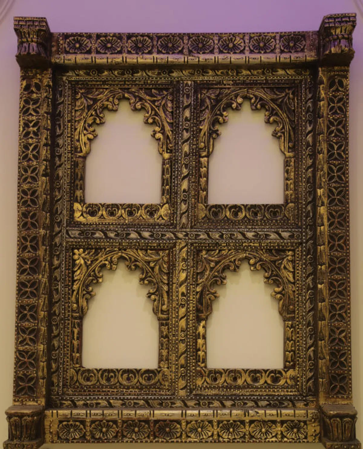 • النوافذ الغائرة: من الأفكار المبتكرة في تصاميمها، النوافذ البارزة والغائرة، والمطلية بطبقة رقيقة من اللون الذهبي، والأخضر، والأحمر الداكن.