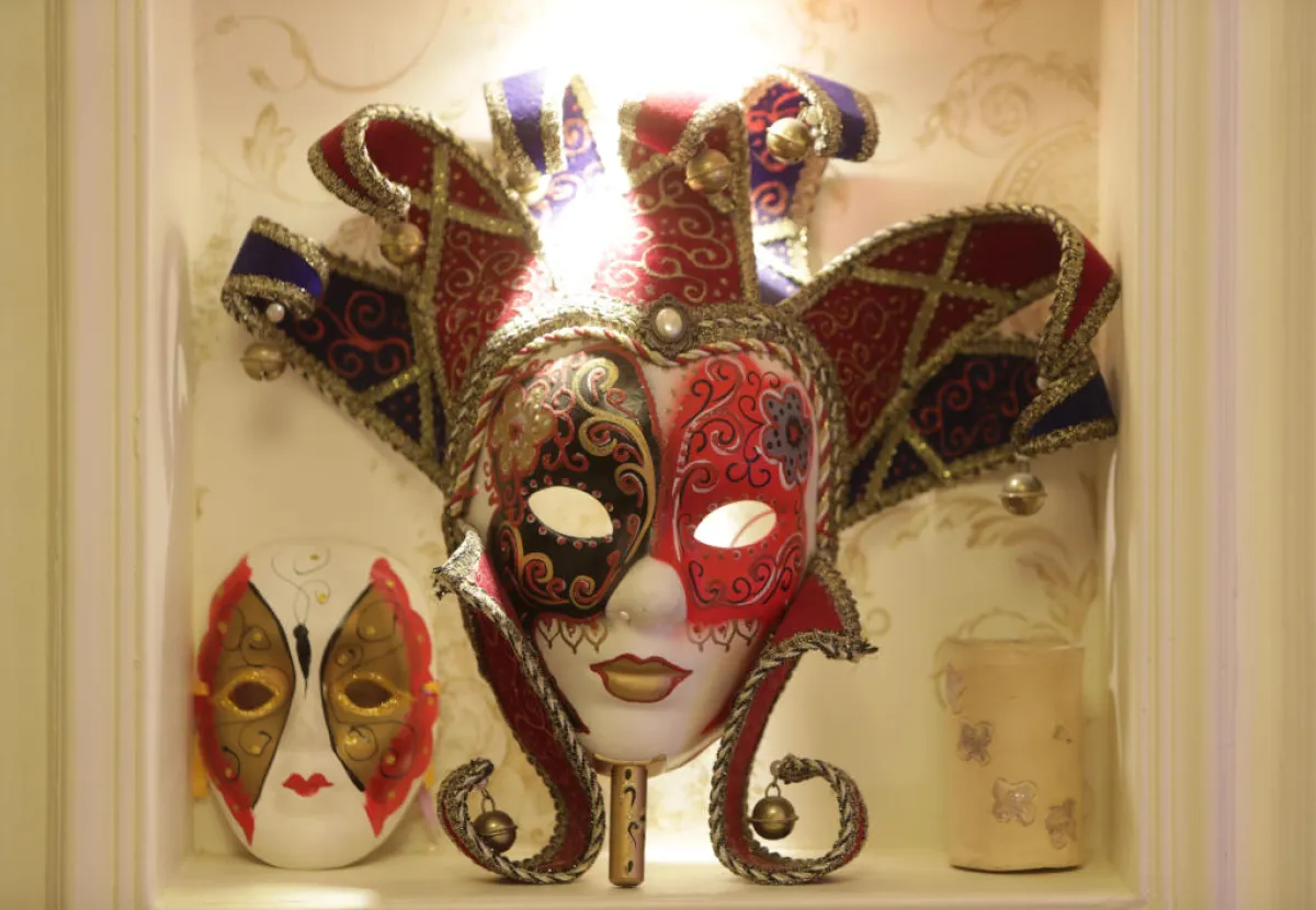 • الأقنعة الإيطالية التنكرية: تستخدمها المصمِّمة في تزيين جدران المنزل، وهي مصنوعة من الجبس والبورسلين، ومطلية بالأصباغ، وتضيف إليها الريش والكريستال، لتقدّم لنا مظهرًا شبيهًا بالكرنفالات التي تقيمها مدينة البندقية الساحرة.