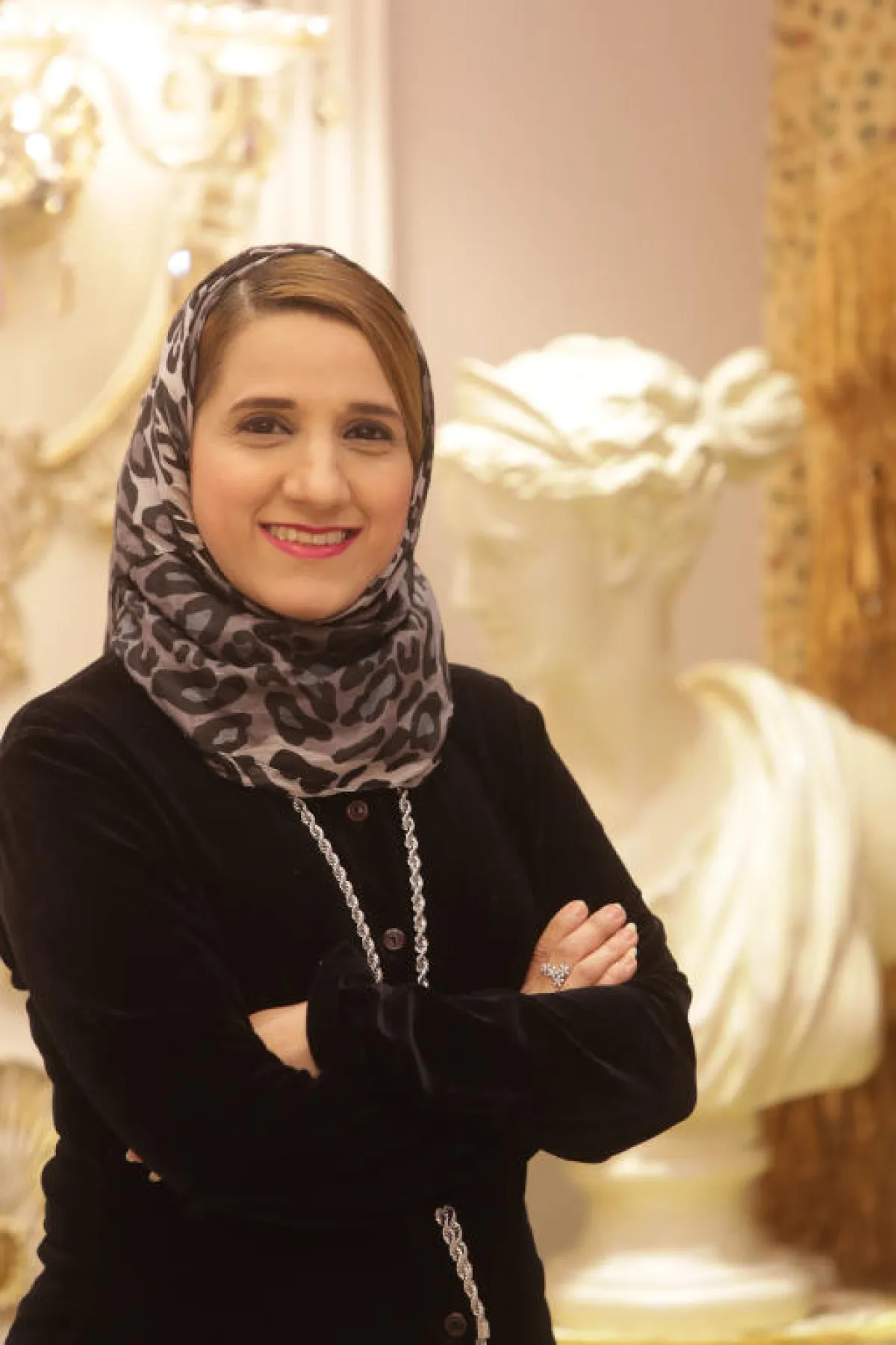 • الزخارف المغربية: تكثر المصمِّمة من توظيف الزخارف المغربية المذهبة في تصاميمها.