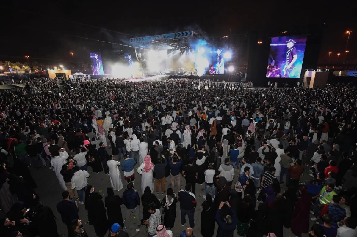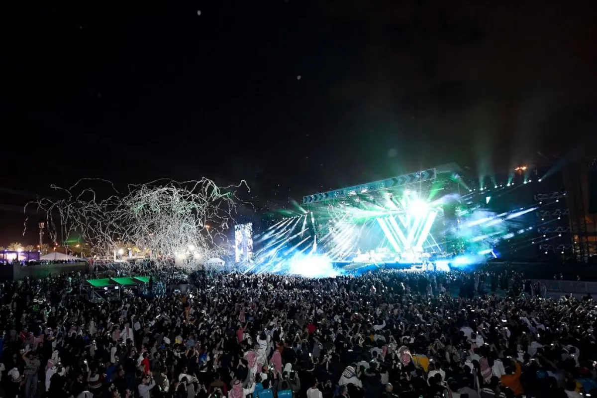 وفي تمام الساعة السابعة والنصف، انطلقت الحفلات الموسيقية بالأنغام الغربية، حيث اكتظّ المسرح بآلاف الزوار بحضور أكثر من ثلاثة فنانين في اليوم الأول، وألهَمَ المطرب إنريكي إغليسياس Enrique Iglesias الزوار في حفله الأول بالسعودية، واعتلى خشبة المسرح وسط أجواء تعلوها البهجة والتفاعل الكبير، ووسط هتاف الحضور باسمه ليشعل الأجواء الشتوية ويتفاعل الجمهور الكبير مع الأغاني التي قدمها، ولم تكن الليلة هادئة، حيث سبق أنريكي مجموعة من المطربين الذين قدّموا أعمالًا غنائية لأكثر من خمس ساعات متواصلة، بمن فيهم الفنان العالمي ،جيسون ديرولو Jason Derulo .