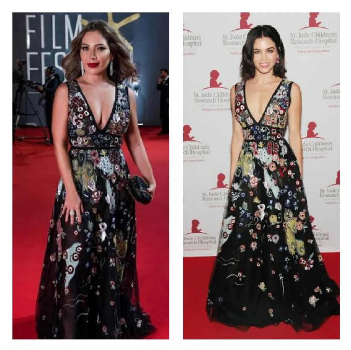 كذلك كنا قد شاهدنا النجمة سلافة معمار في فستان ناعم معرق بالورود من زهير مراد Zuhair Murad في مهرجان الجونة، وقد سبقتها إليه الممثلة الأمريكية “جينا ديوان” Jenna Dewan واعتمدته في إحدى المناسبات الرسمية على السجادة الحمراء.