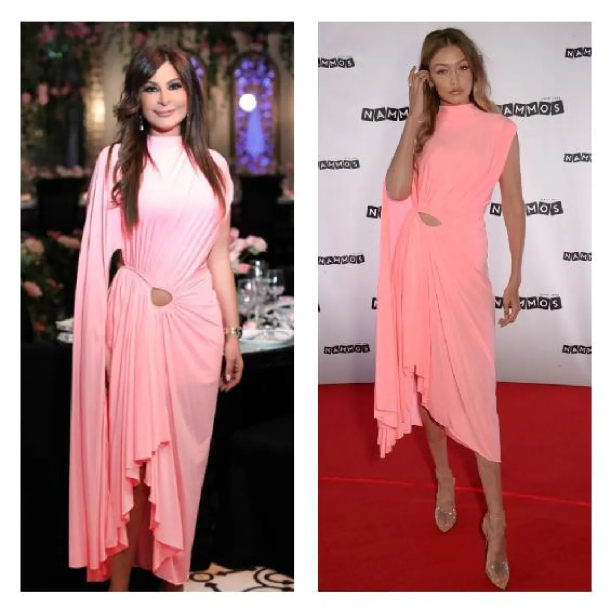 ياسمين صبري والمغنية هند في الفستان نفسه من يوسف الجسمي: