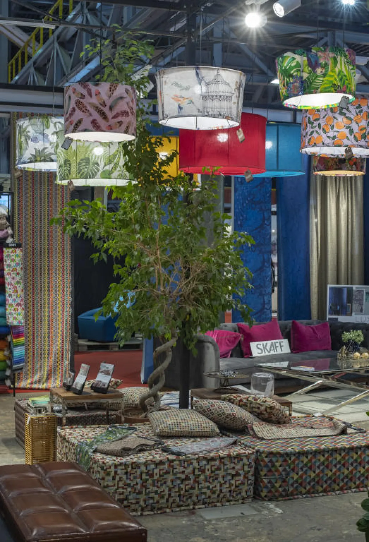 ومن المُلاحظ أنَّ الأقمشة السادة وذات النقوش المستلهة من الطبيعة، تدخل أيضًا في تصاميم وحدات الإضاءة التي تتلوَّن بلون الذهب أوالبرونز.
