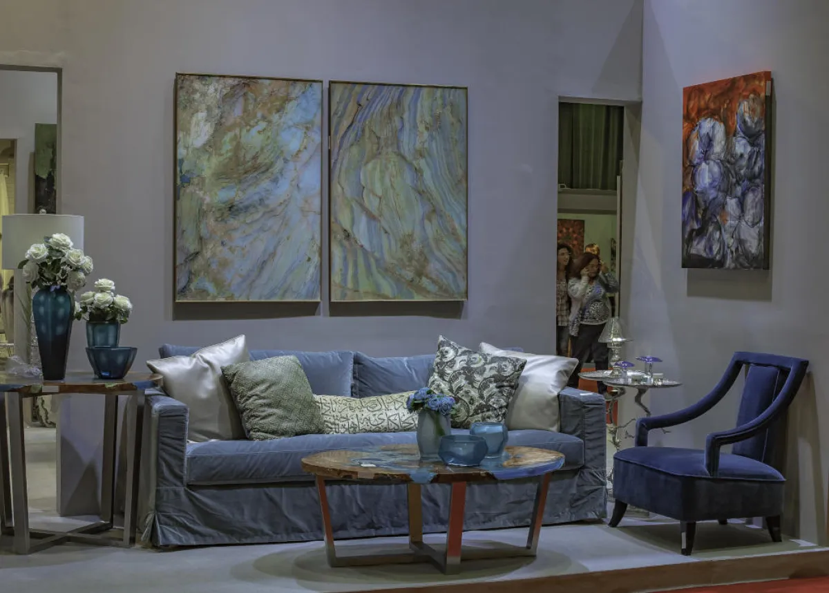 وبعيدًا عن ألوان الشتاء القاتمة، لا مانع من استعمال الألوان الفاتحة، من أزرق وأصفر للسجاد أو الوسائد أو اللوحات، كما لاحظ "سيدتي. نت" أثناء الجولة، في معرض Art Of Living 2018، الذي نُظِّم في بيروت أخيرًا.