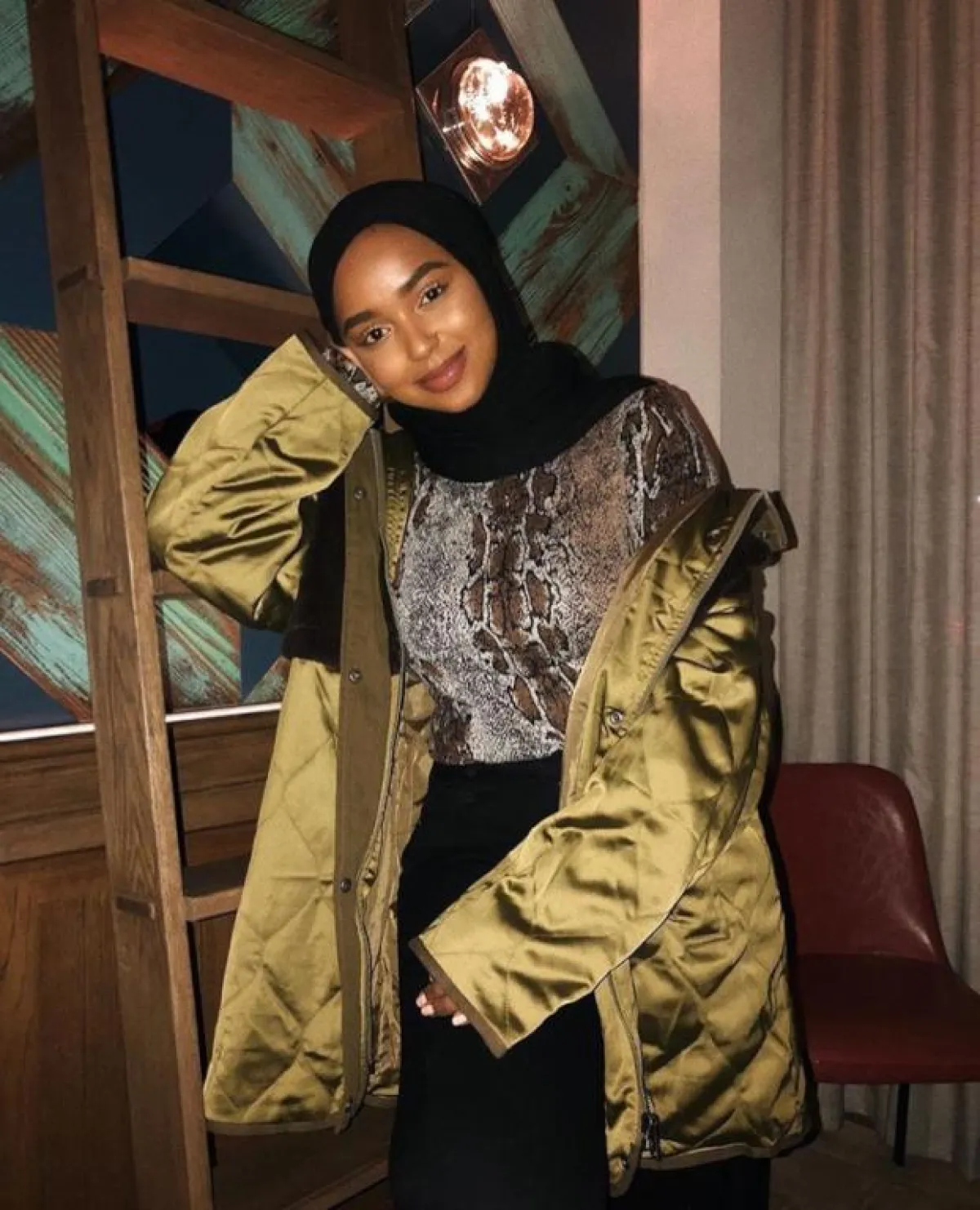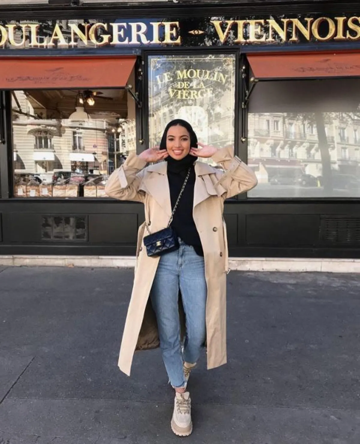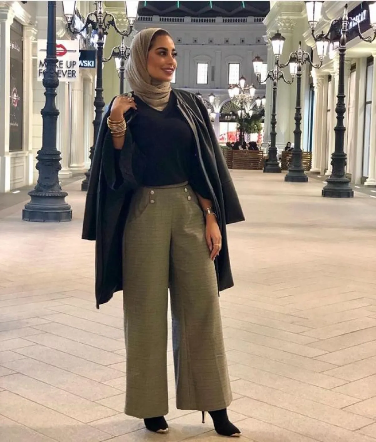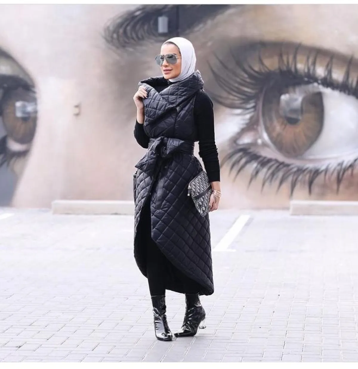 في المقابل اختارت المدونة الخليجية فطامي بو حمد، المعطف ذا اللمسة المترفة، كـ المعطف الأسود المنفوخ من دون أكمام، وأعجبنا طريقة تنسيقه مع البلوفر الصوف الأسود بلون المعطف نفسه، مع الياقة الكبيرة، والبوت اللامع الذي أضاف لمسة عصرية كالتي نشاهدها على منصات عروض الأزياء.