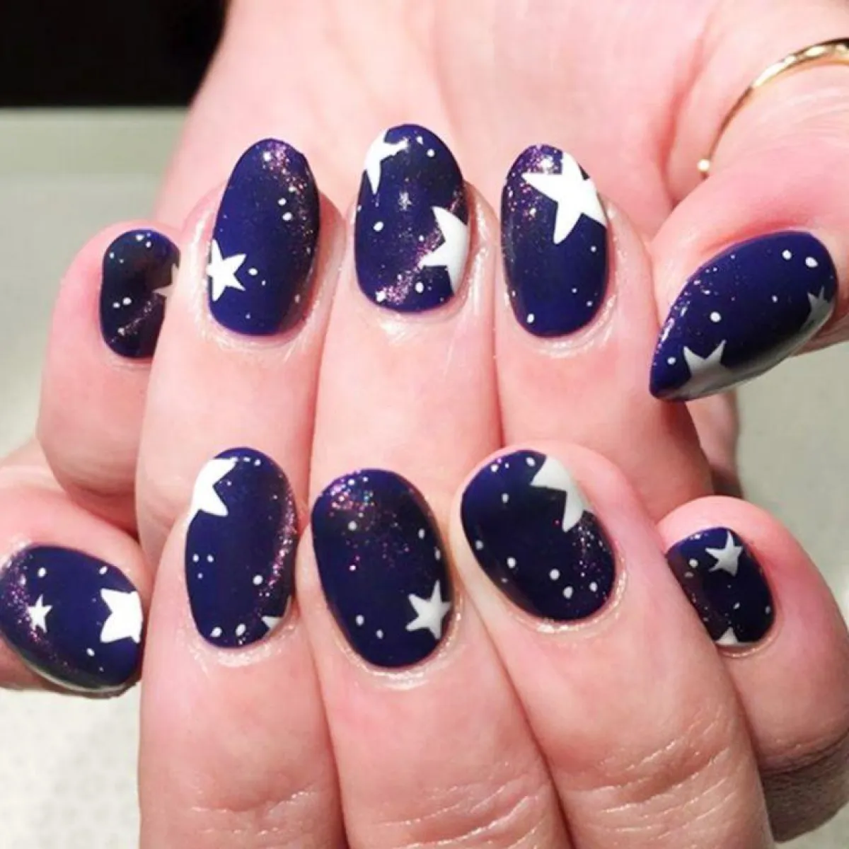 مع أجواء الشتاء الدافئة، لمَ لا تستوحين رسومات المناكير من النجوم في ليلة صافية، كالرسومات باللون الكحلي، مع النجوم الملونة بالأبيض، والتي تناسب الصبايا المراهقات مع الملابس الكاجوال.
