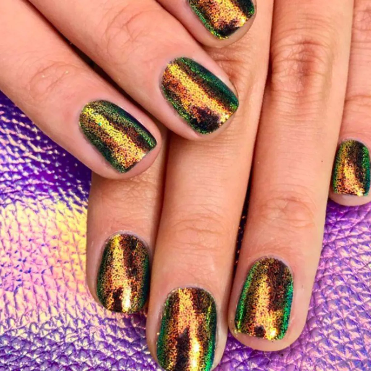 الجليتر سوف يكون أحد الخيارات التي تخرجين بها عن المألوف، كأن تضعيه على نصف الظفر والنصف الآخر باللون الشفاف، أو أن تعتمديه على الأطراف من الخارج أو الداخل.