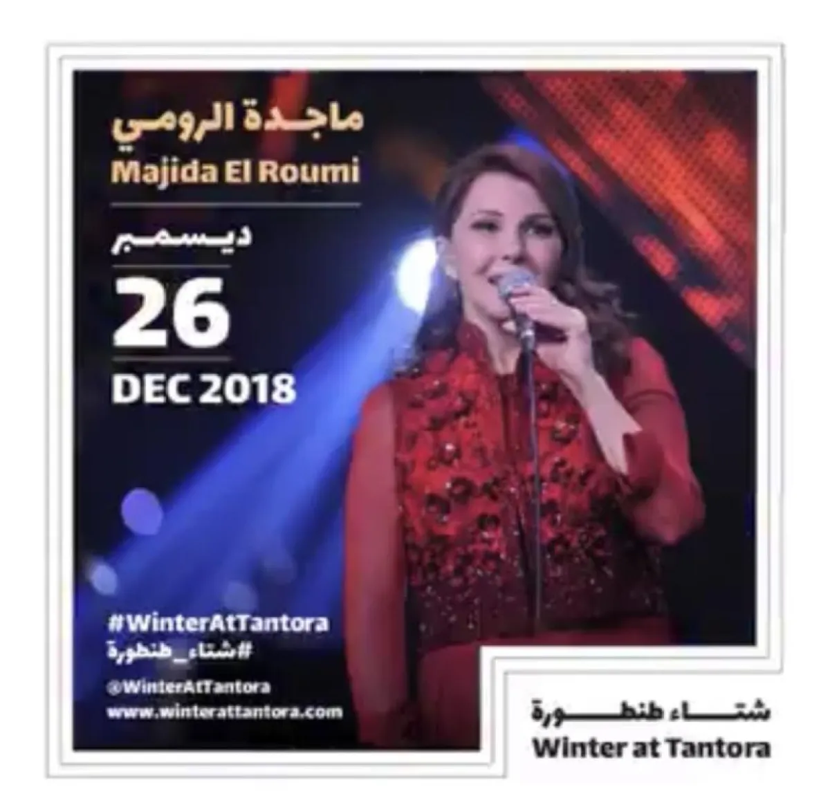 فيما تطل الفنانة ماجدة الرومي في ليلة أسطورية على جمهور شتاء طنطورة في يوم 28 ديسمبر.