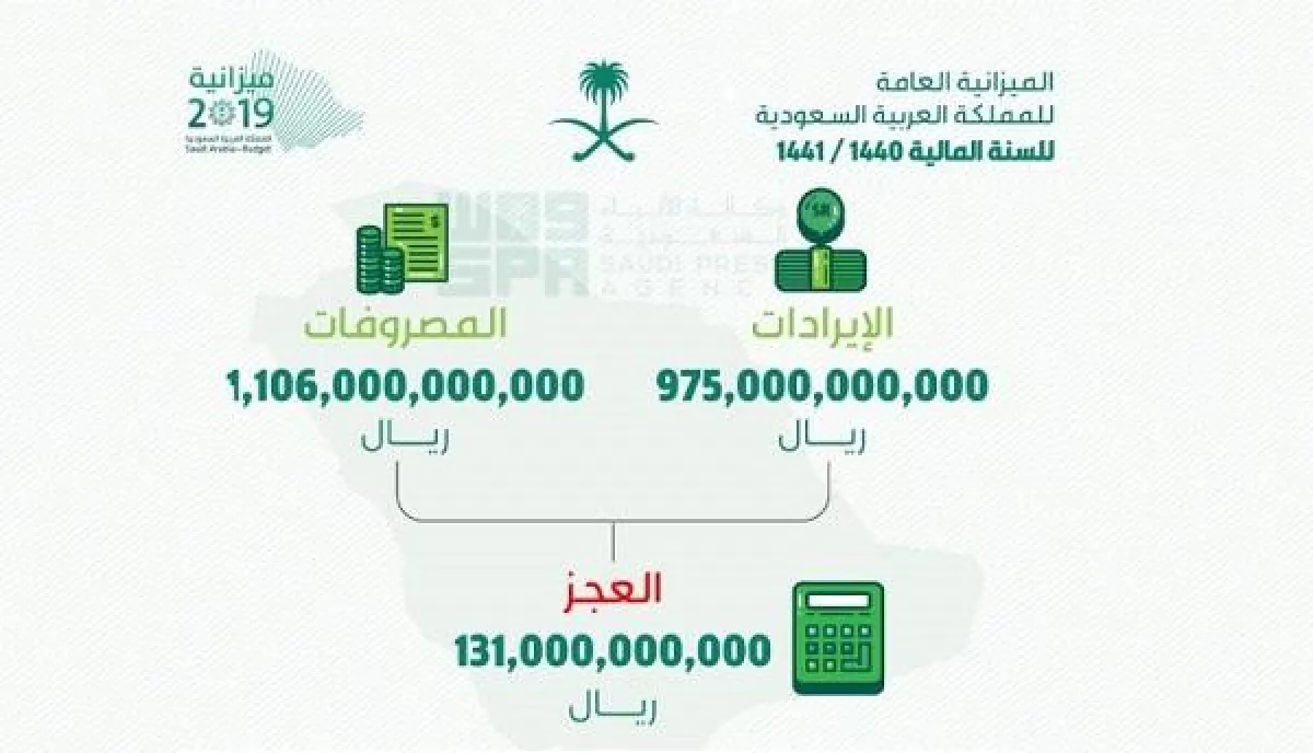 يذكر أنّ البيان المالي للميزانية أظهر على الموقع الإلكتروني لوزارة المالية السعودية أنّ النمو الاقتصادي المتوقع في 2019 يبلغ 2.6%، وأنّ يبلغ عجز الميزانية 4.1 % من الناتج المحلي الإجمالي، بينما يصل رصيد الدين العام إلى 678 مليار ريال (180.8 مليار دولار) ليمثل 22% من الناتج المحلي الإجمالي، ومن المتوقع أن يرتفع إلى 25% بحلول عام 2021.