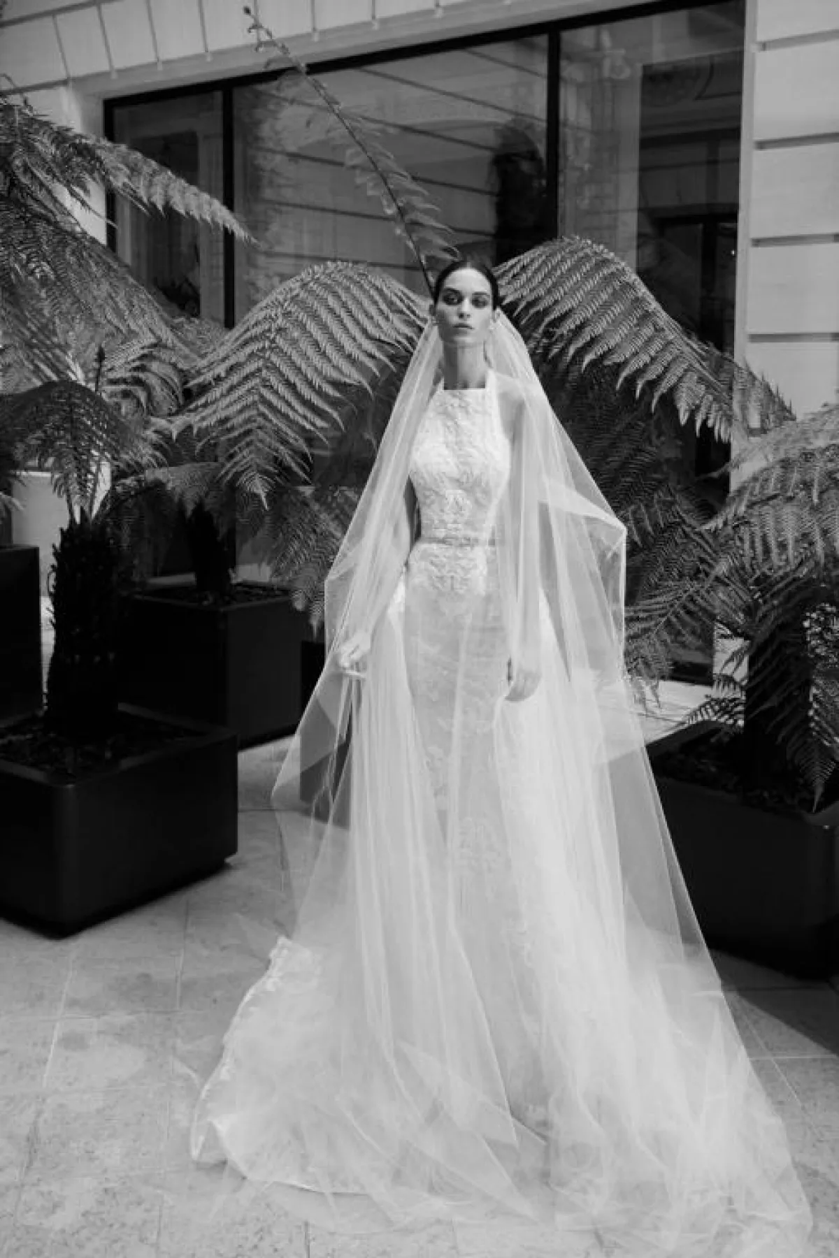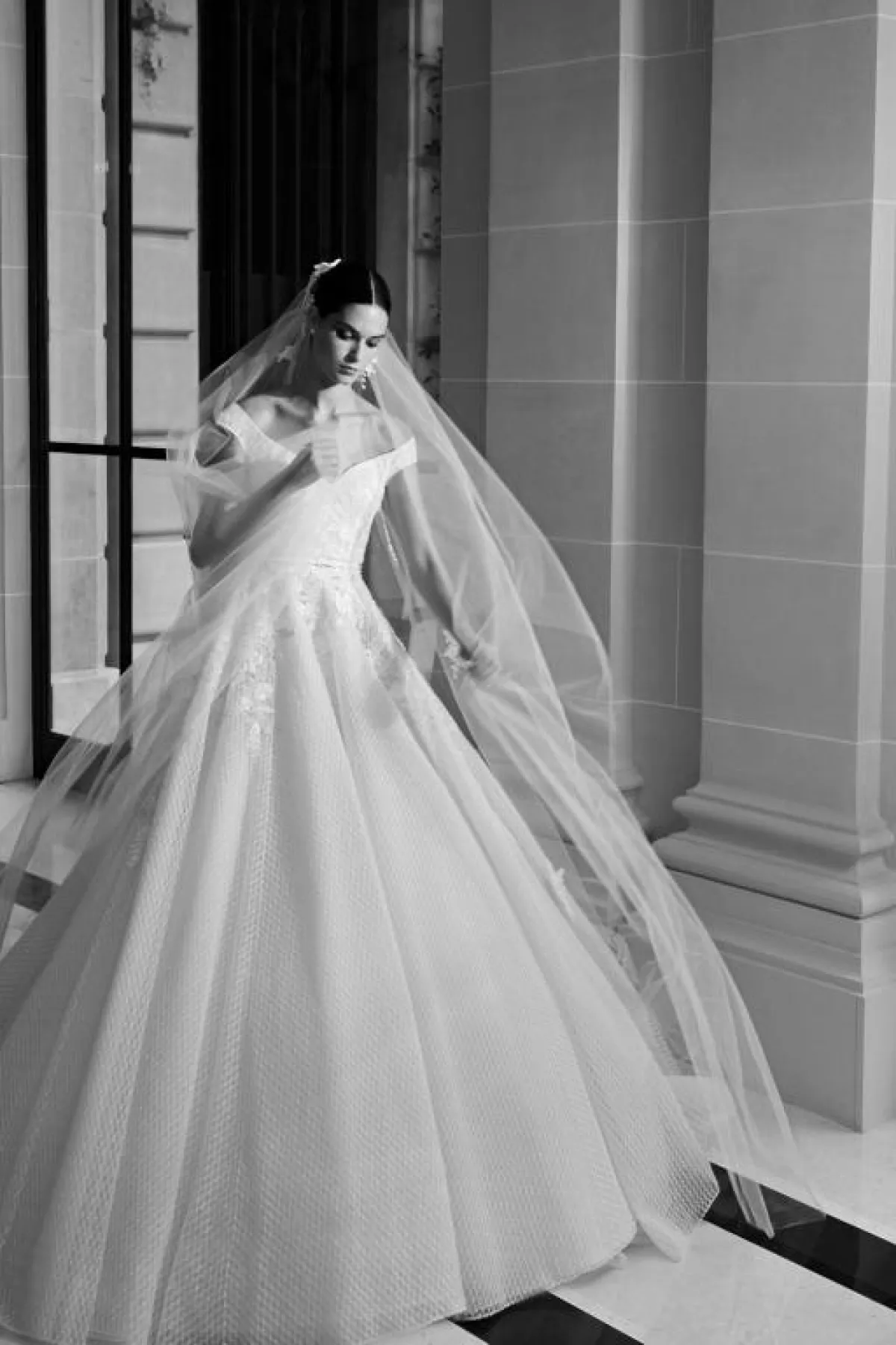 ولم تكتفِ ريم عكرا بالورود على الفساتين، بل نسقت الطرحات التول الطويلة المزينة بالورود مع الفساتين لتبدو العروس في كامل جاذبيتها ونعومتها.