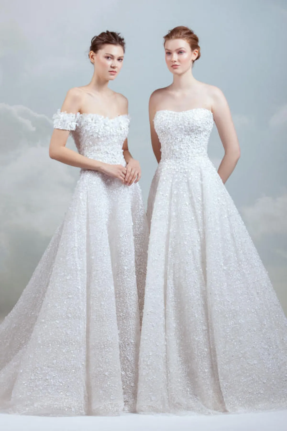 برزت الفساتين بصيحة الأوف شولدر Off Shoulder مع الحمّالات المنسدلة أو الأكمام الطويلة، والتي تضيف لمسة أنثوية للعروس، مثل فساتين إيلي صعب Elie Saab وزهير مراد Zuhair Murad.
