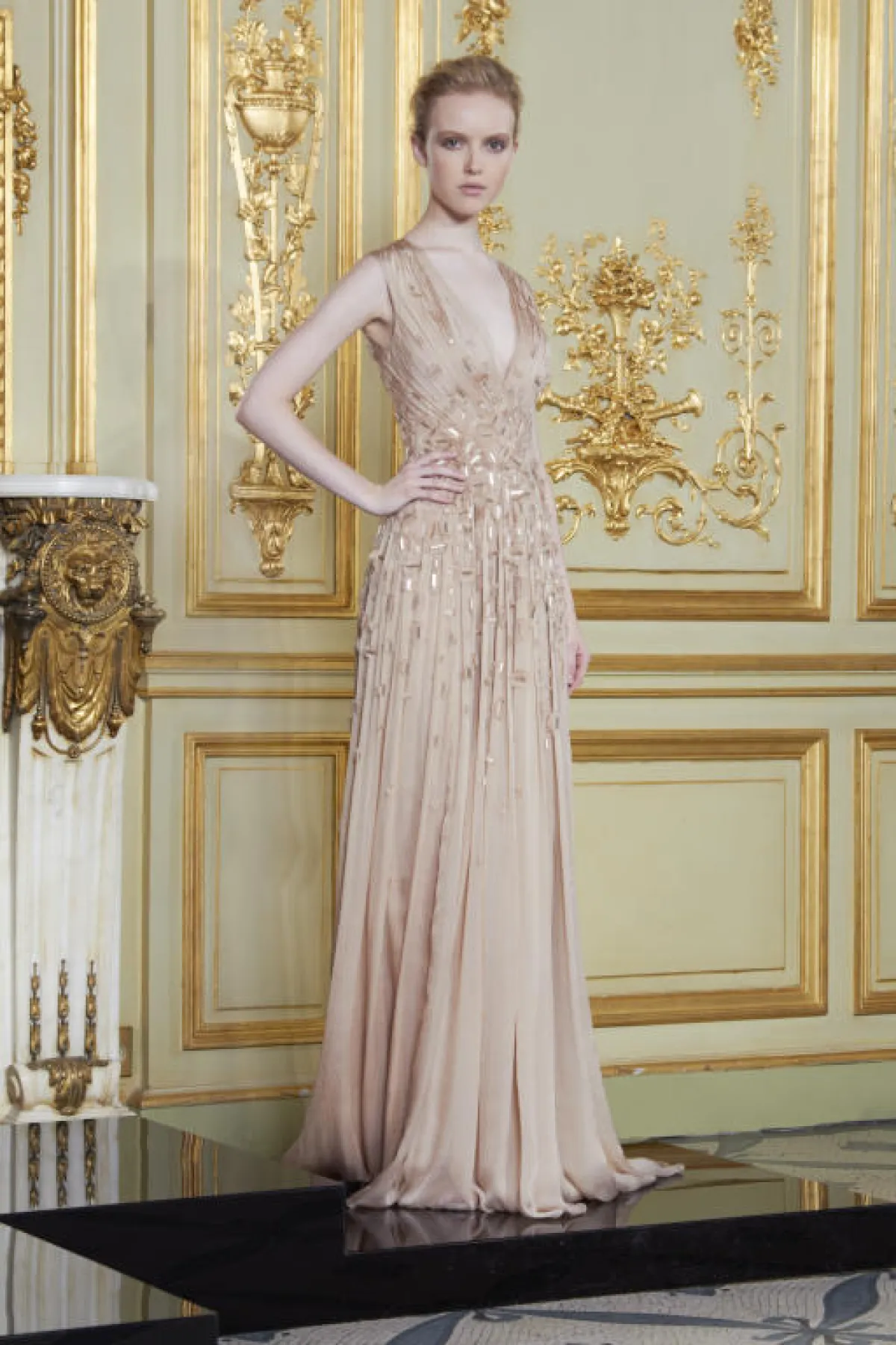 كشف المصمم السوري رامي العلي النقاب عن تشكيلته الجديدة لموسم خريف وشتاء 2013/2014، وهي تشكيلة مستوحاة من أعمال الرسام العالمي غوستاف كليمت. ابتكر رامي العلي تناغماً غنياً بين الألوان التي مزجها بسلاسةٍ على أرضيةٍ ذهبيةٍ وفضيةٍ وبلاتينية. وأضفت درجات الأرجواني والوردي والشمبانيا لمسةً ناعمة مع حضورٍ فخمٍ للبنفسجي الداكن والأسود. أما الأقمشة فعزّرت الروح الباذخة للمجموعة مع مزيجٍ من الدانتيل الناعم والحرير الشفاف والشيفون والأورغانزا الذين كسروا من حدّة الأنسجة المعدنية.