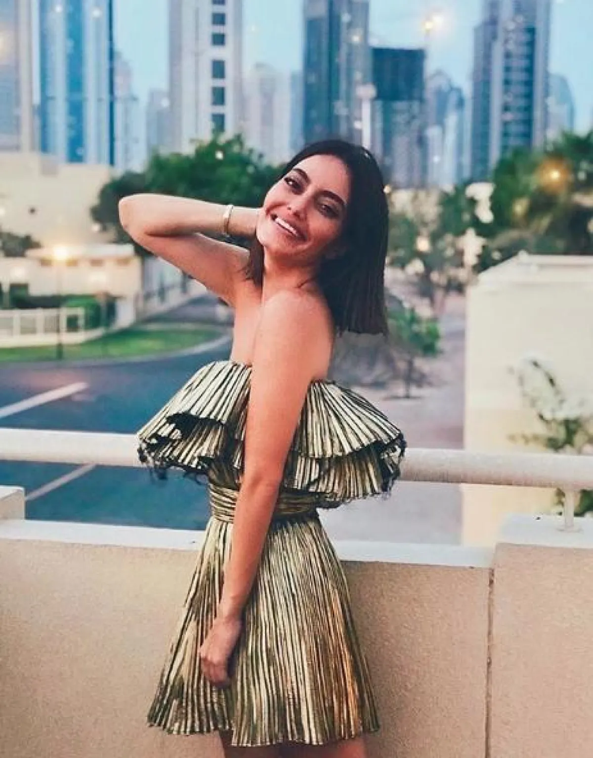 ديما الأسدي في فستان ميتالك باللون الأزرق: